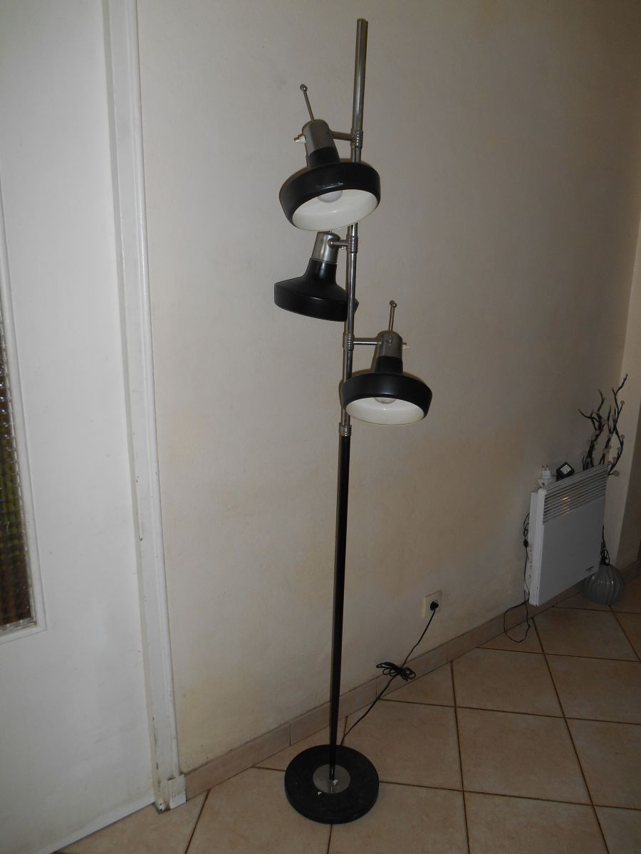 3 spots fonctionnels et orientables qui possèdent chacun son interrupteur douilles à baïonnettes hauteur 1.m 82