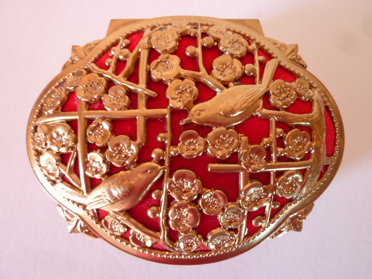 Boite à bijoux a motifs de cerisiers et oiseaux