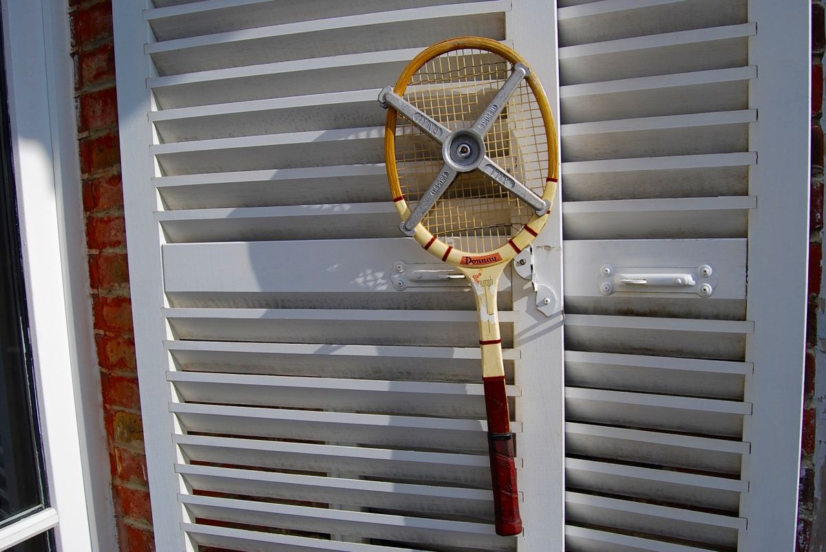 Raquette de tennis Donnay vintage en bois et sa croix de tension en acier (quelques marques dues au temps) - Idéal en décoration de chambre de sportif - A croiser par ex avec une autre comme sur la 2ème photo (possibilité d'envoi groupé avec 2ème raquette proposée dans ma boutique ).