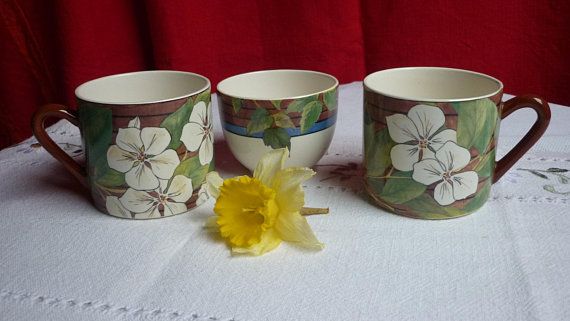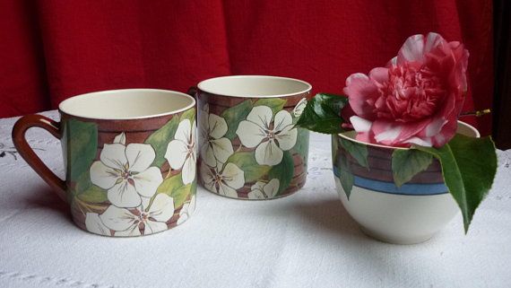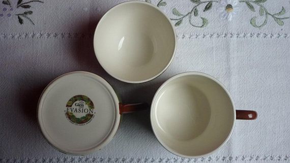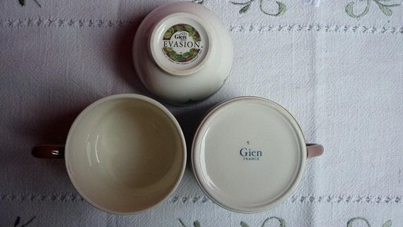 Deux magnifiques tasses de Gien et un gobelet Gien.