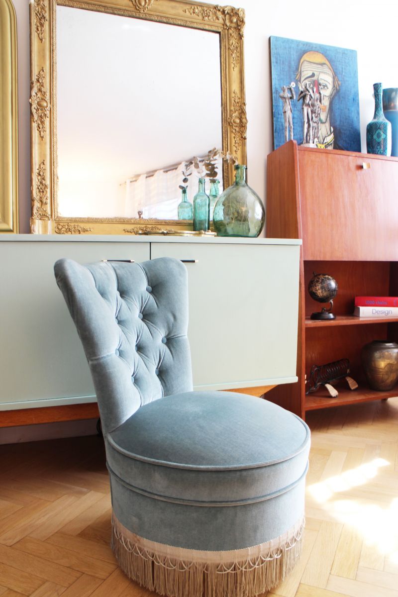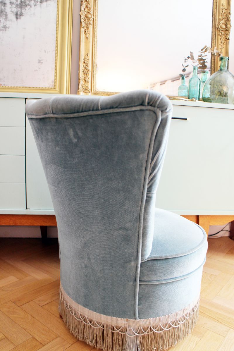 RARE - Fauteuil crapaud en velours vintage datant des années 50.
