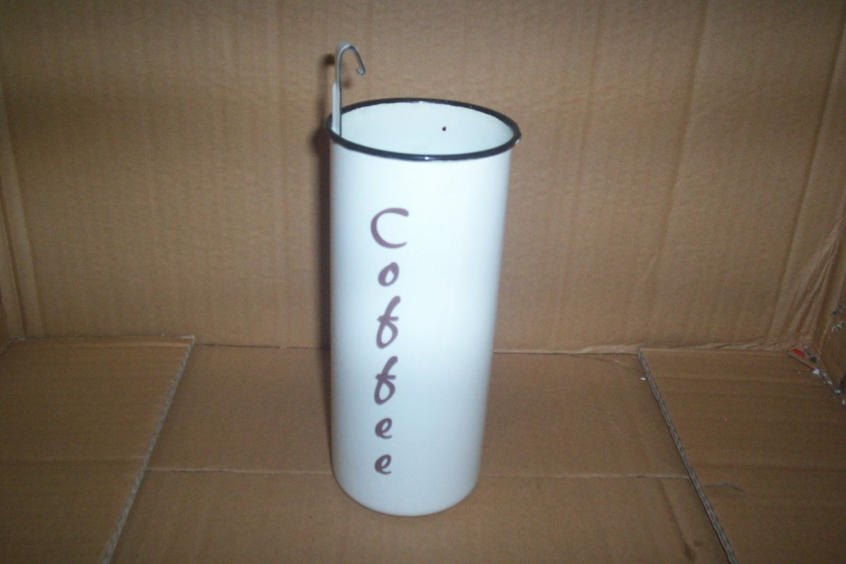 rare pot à café émaillé des années 1960 anglais avec sa louchette objets en très bon état .