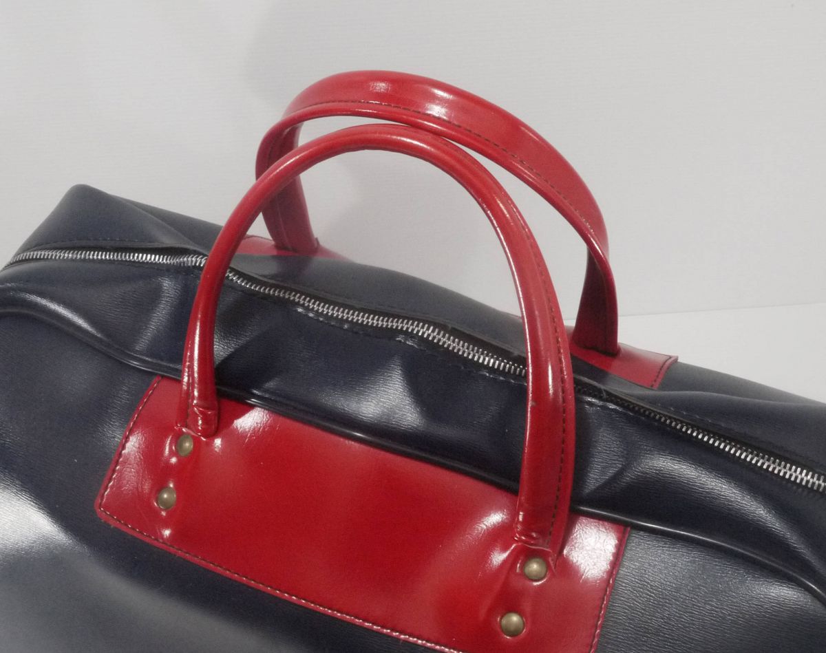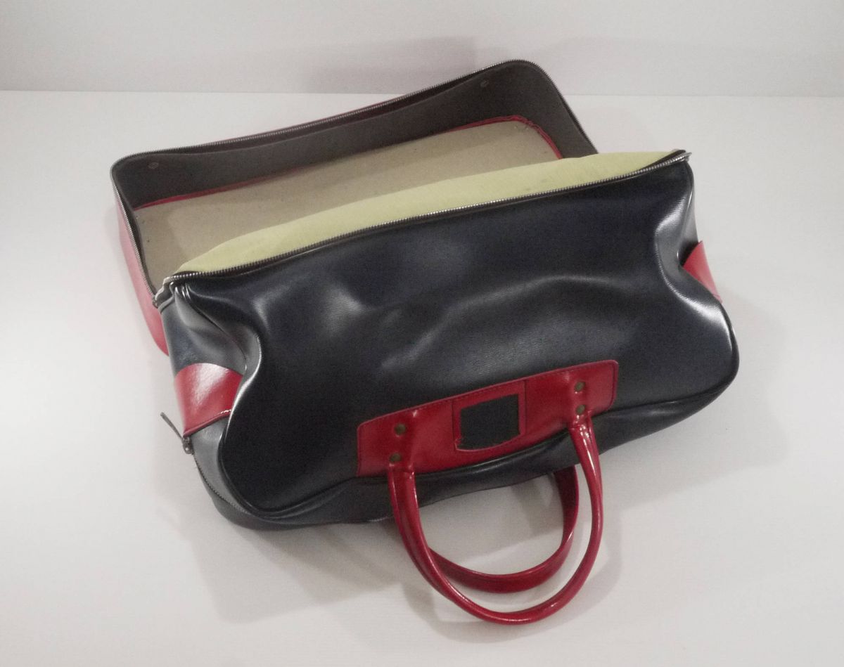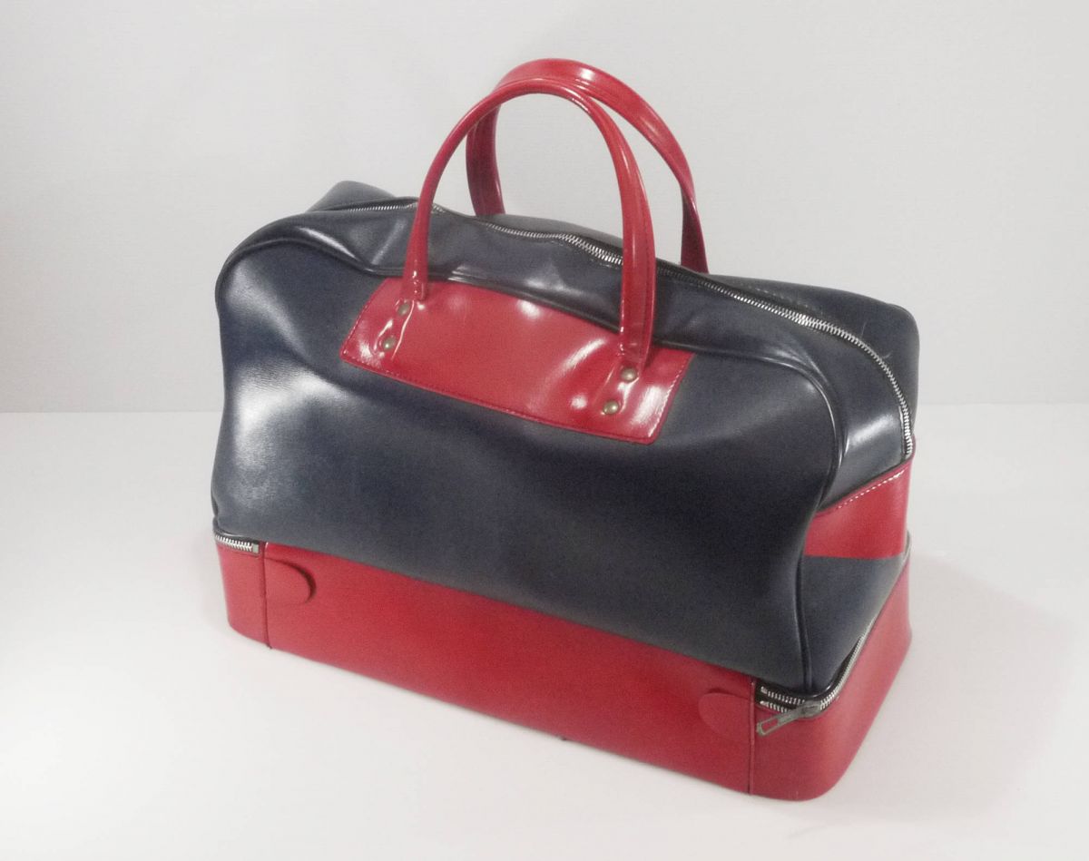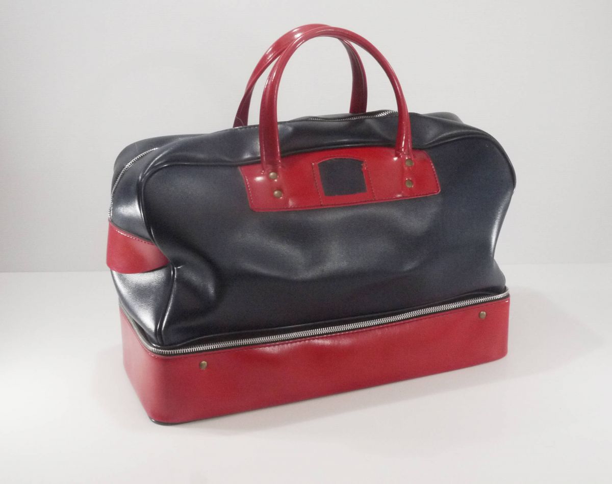 Magnifique et original sac de voyage ou de sport à double fond avec ouverture par fermeture éclair des années 1960-70