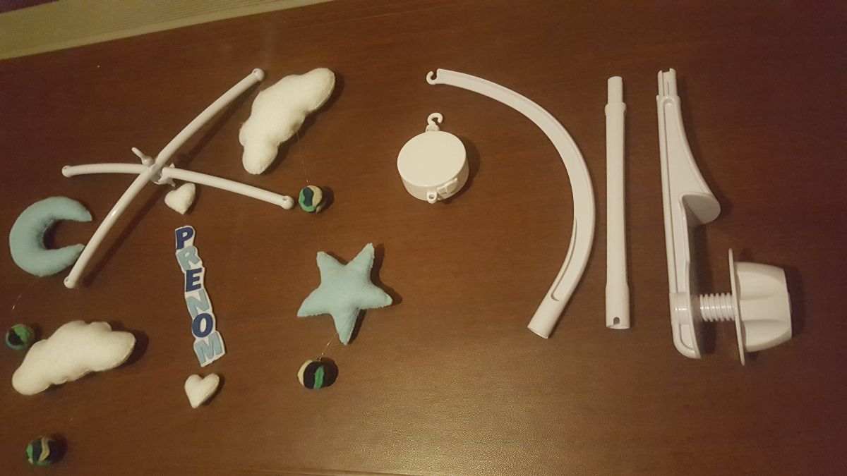 Le mobile musical est livré avec une potence adaptable à tous les lits à barreaux.