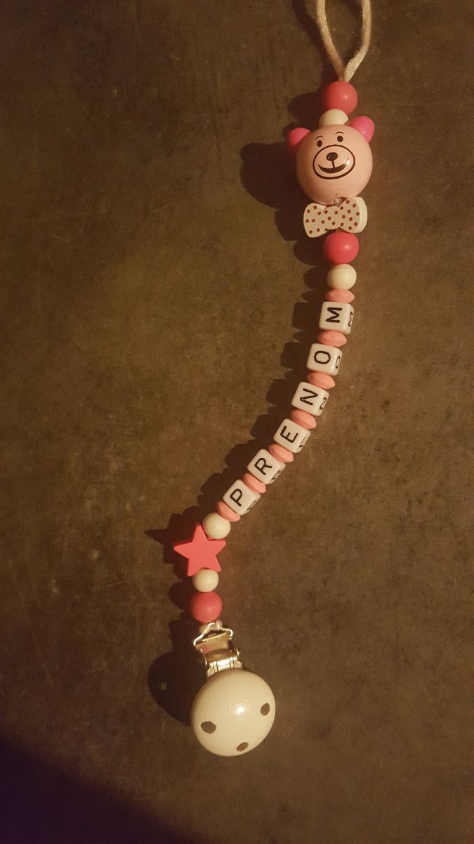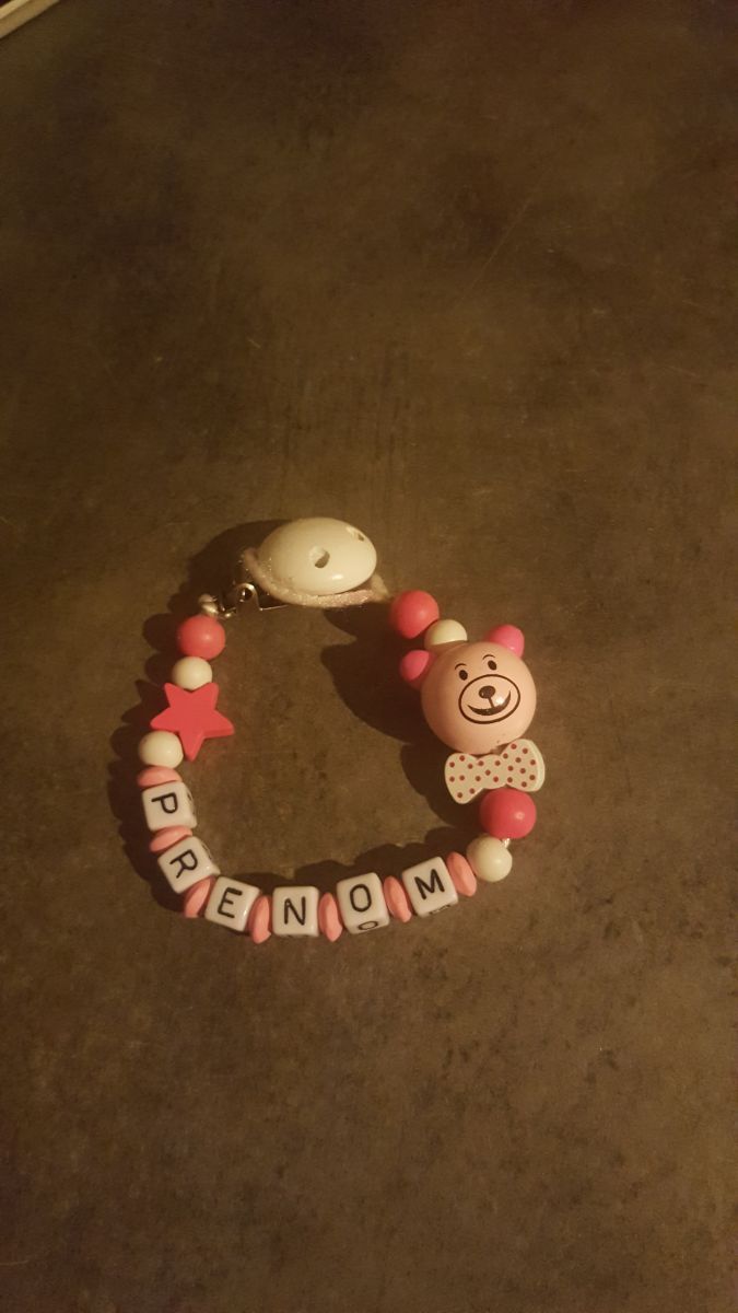 Très belle attache tétine personnalisée au nom de votre enfant, ou à offrir en cadeau.