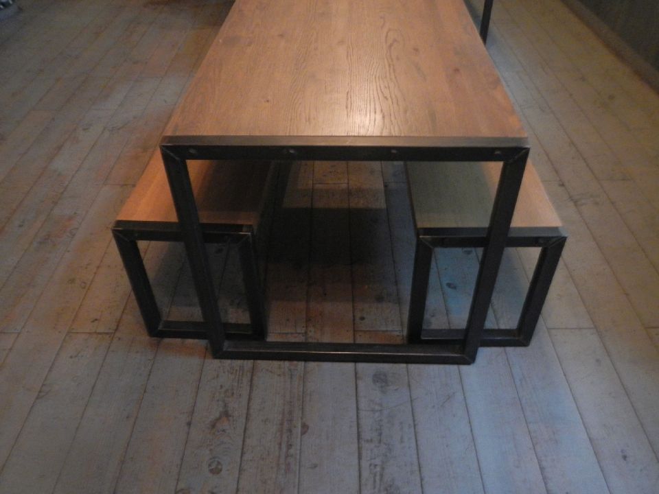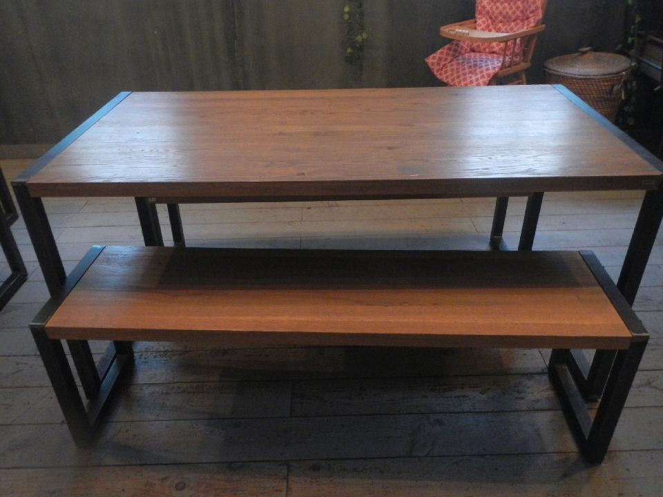 Magnifique table en bois ( 160x75x80 ) armature en fer forgé avec banc