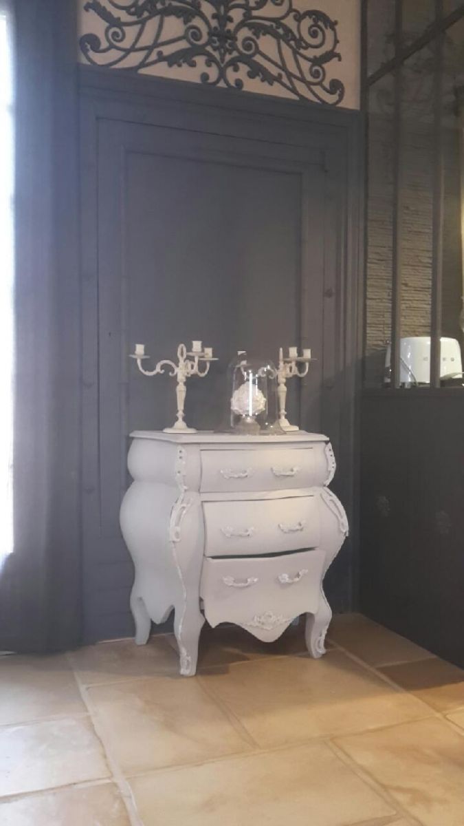 Petite commode restauré patiné grise