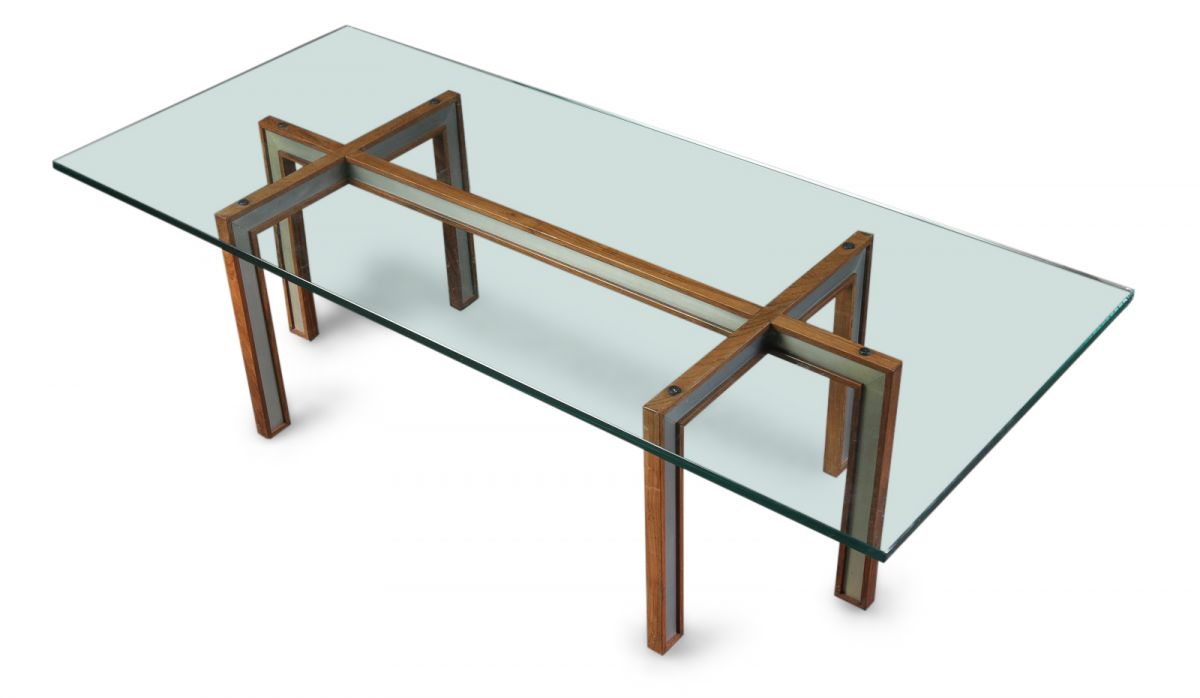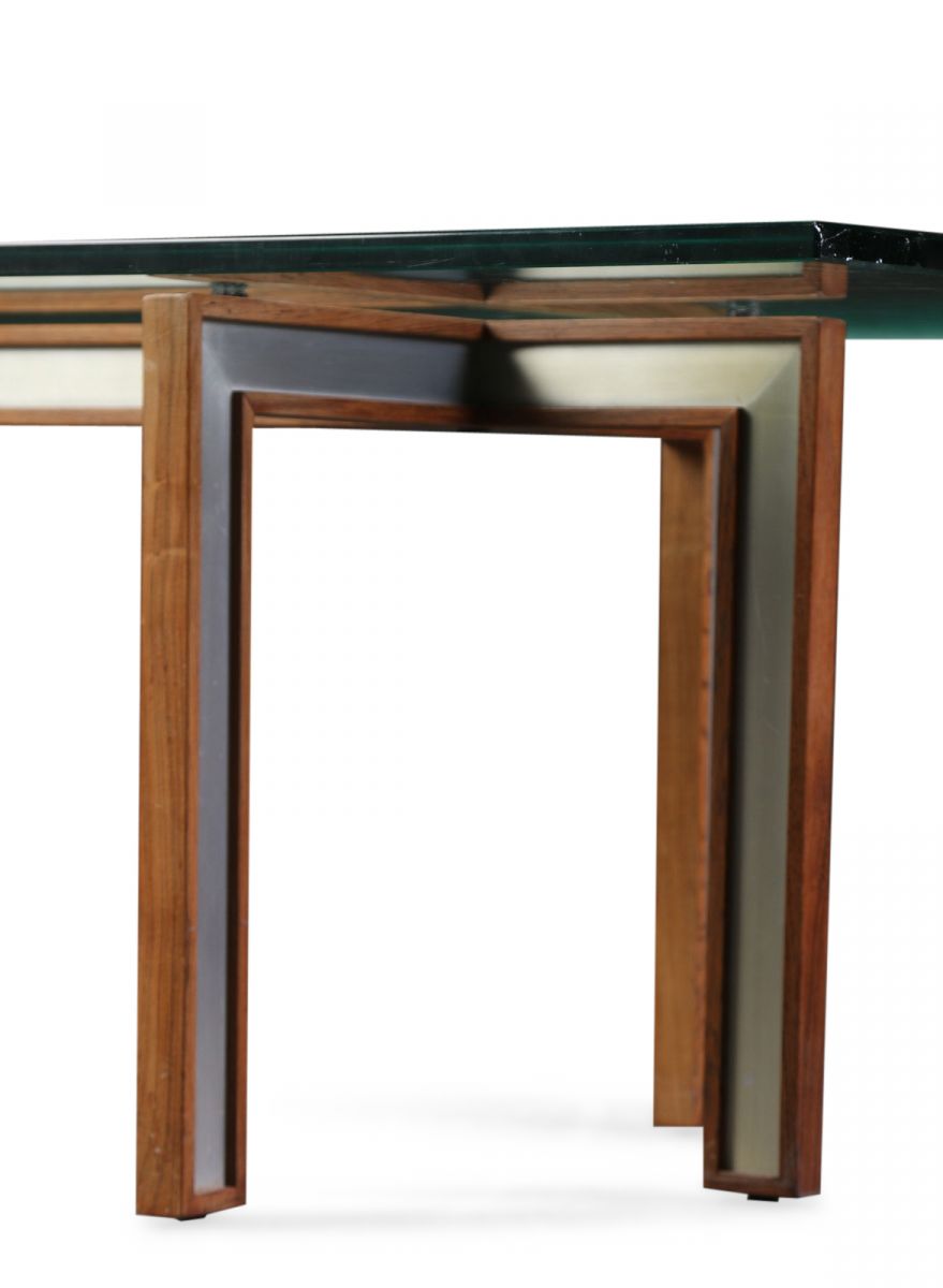 Henning Korch. Table basse avec cadre en palissandre plaqué et en alumium, plateau de verre, env. H. 40 L. 140 B. 60 cm. Fabriqué par CFC, Silkeborg, 1960s. Il y a des traces d’utilisation, dont des rayures et des éclats sur deux coins du plateau de verre.