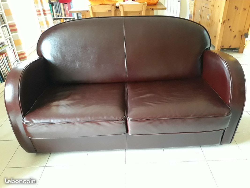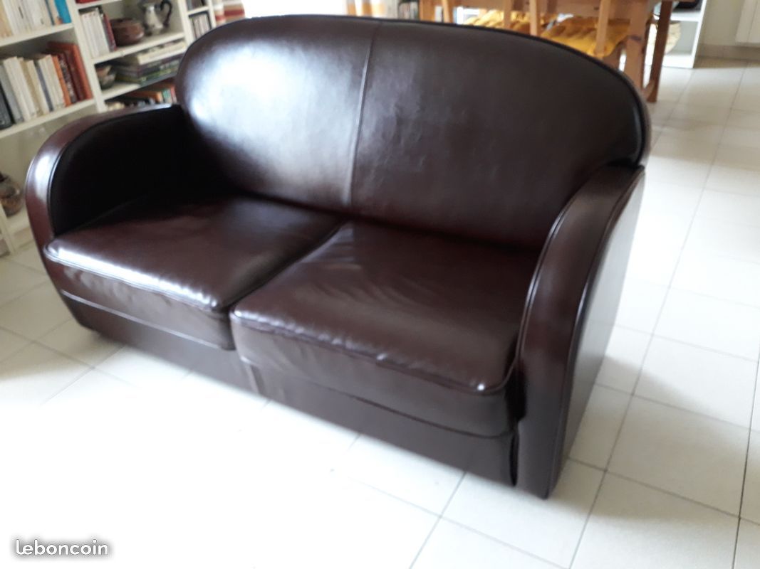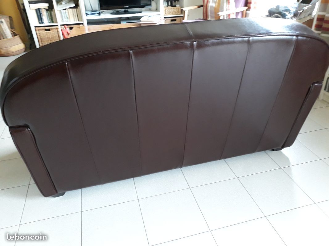 En vente, un canapé club en cuir 3 places fixes en bon état.