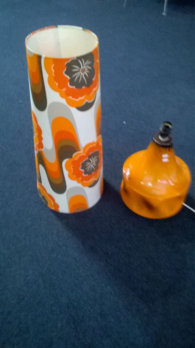Lampe vintage,abat jour tissu,pied de lampe céramique ,