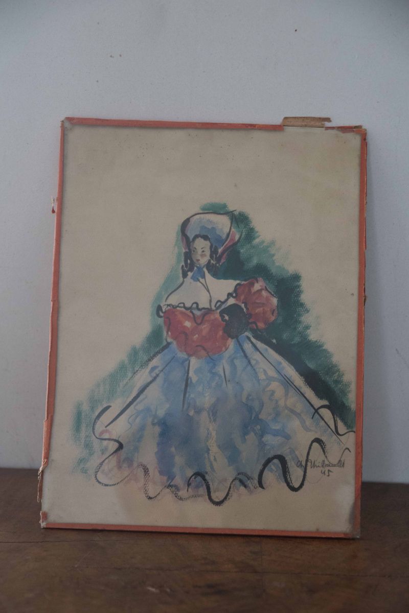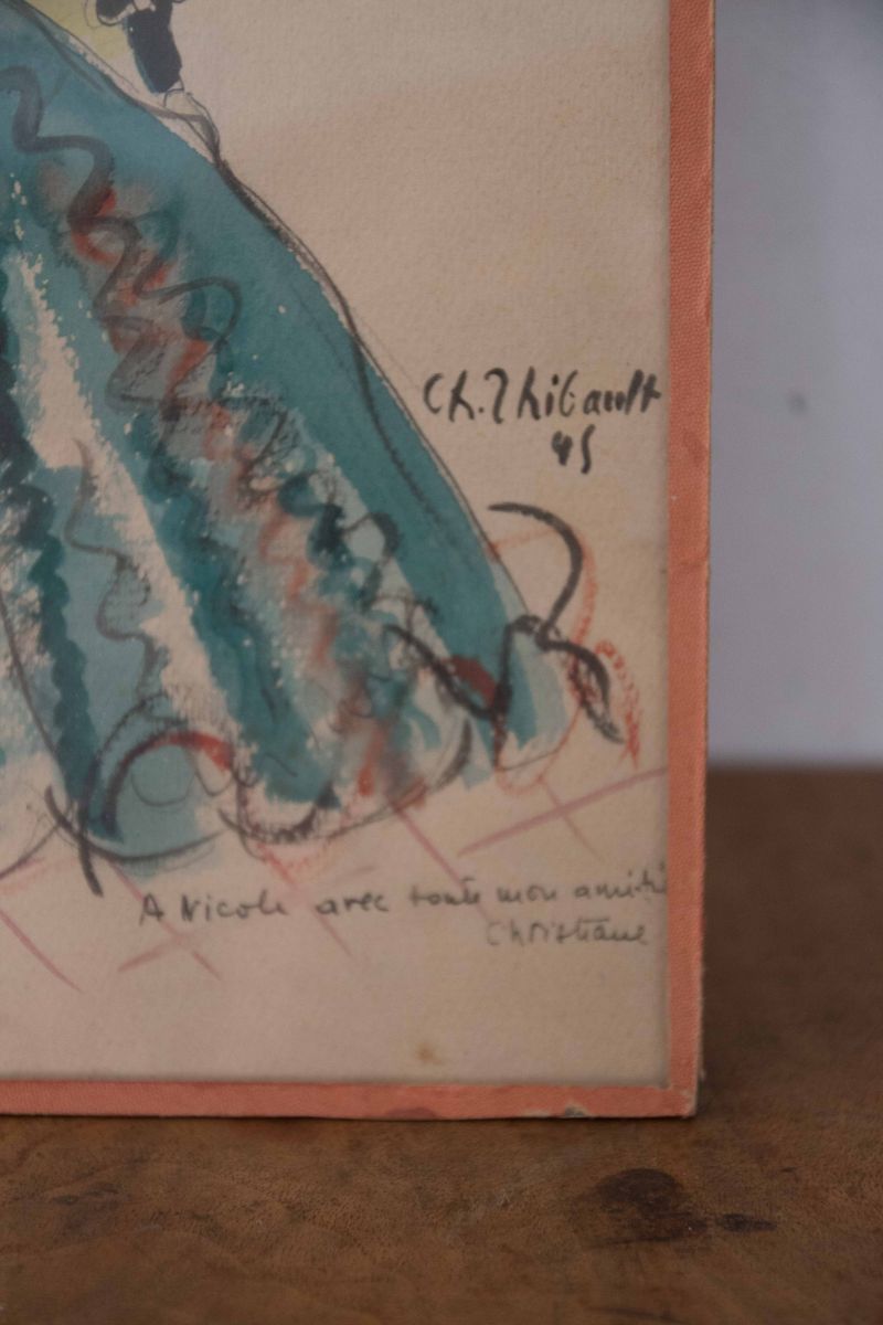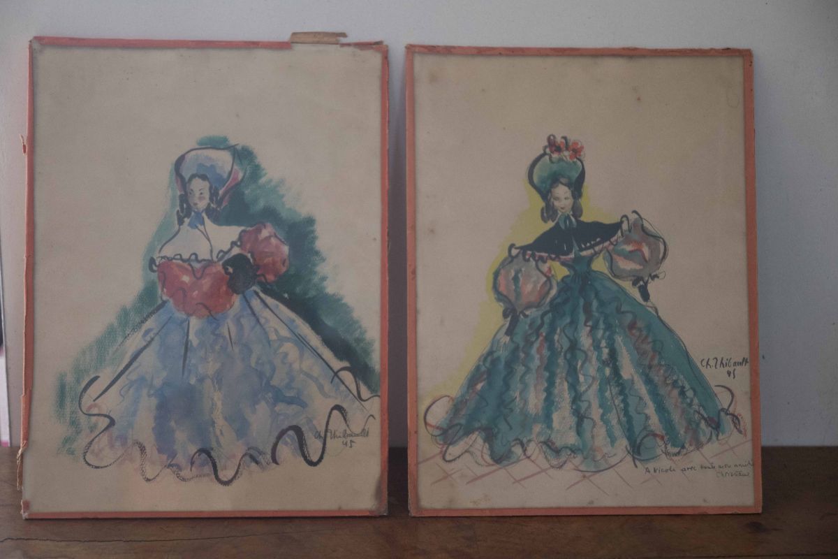 Paire de dessins sous verre dans le style de dessin de mode. il me semble que ce soit des aquarelles sur papier. elles sont signées ch.thibault 45.