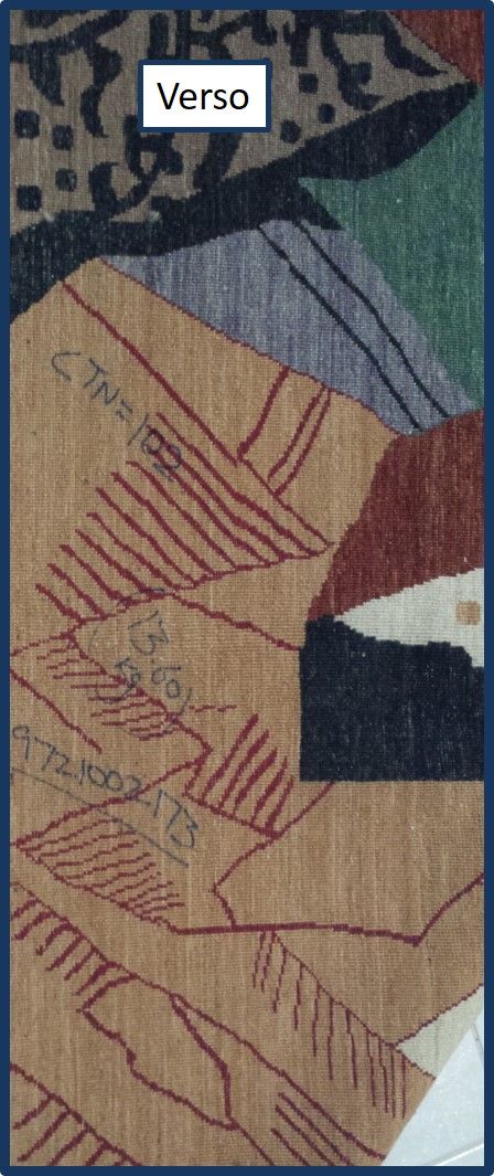 Cette tapisserie, œuvre d’art UNIQUE, est en état absolument neuf. Elle pèse environ 13 kilos. Mon épouse et moi l’avions accrochée sur un mur, mais elle peut être aussi posée au sol et utilisée comme tapis.
