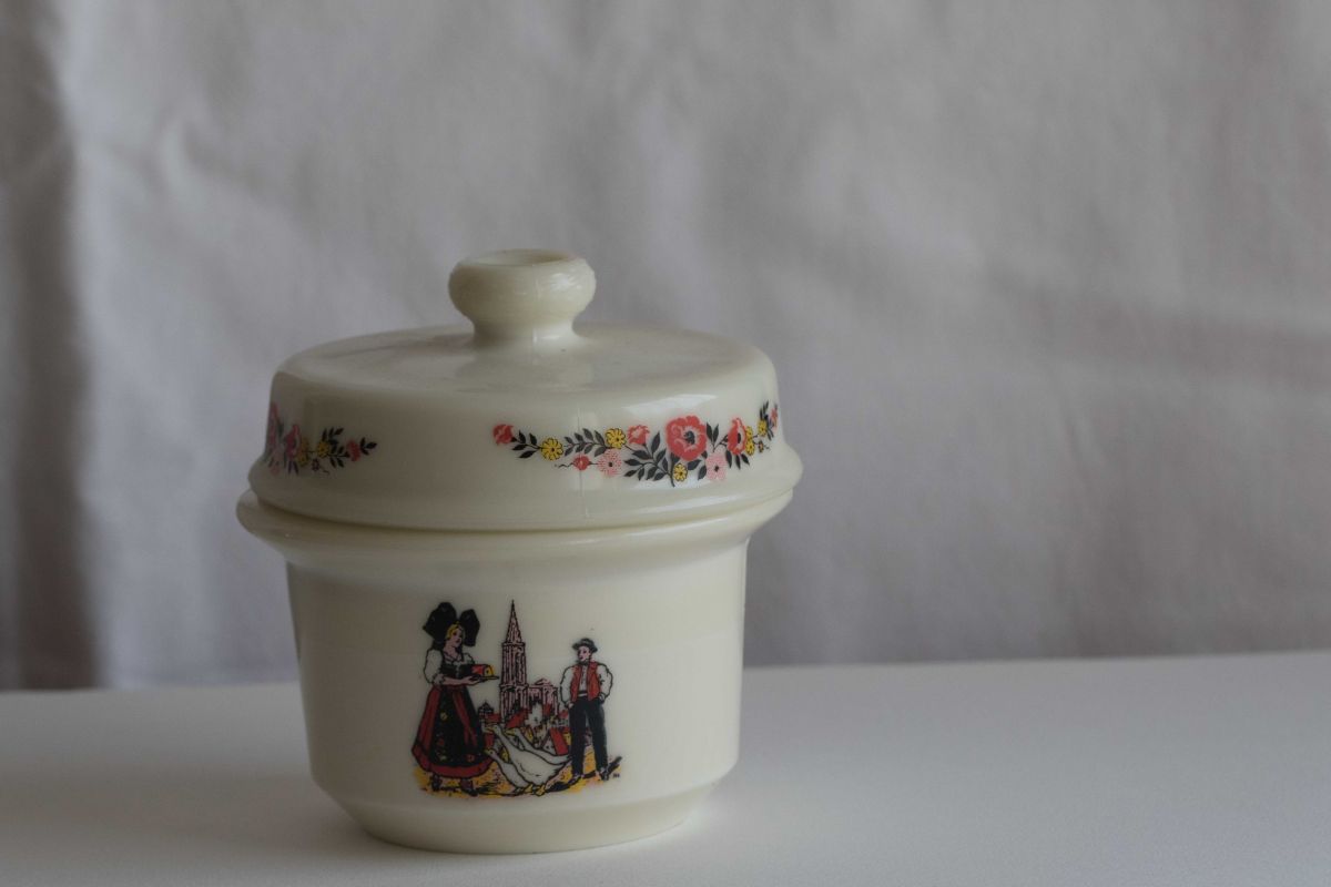 petit pot prévu pour y faire le foie gras au décor alsacien 9.5 cm de haut pour 8 cm de diamètre.