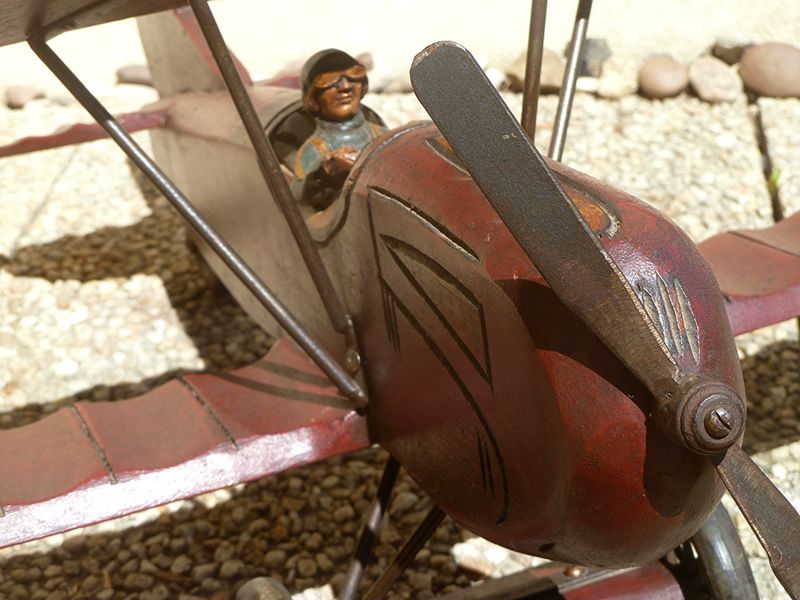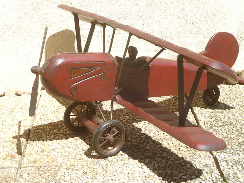 avion type biplan en bois vintage