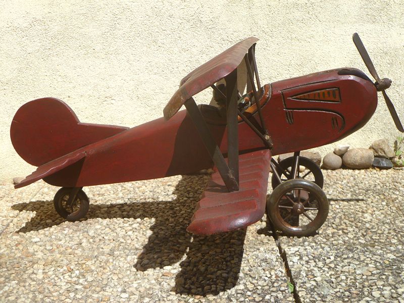 avion biplan en bois ,artisanal , vintage