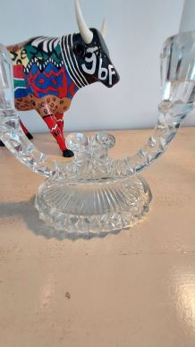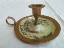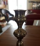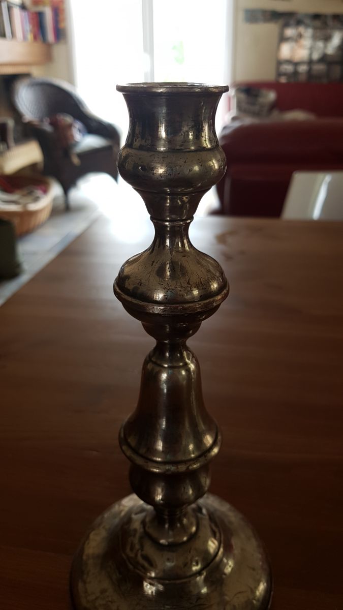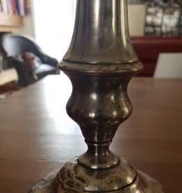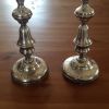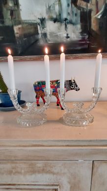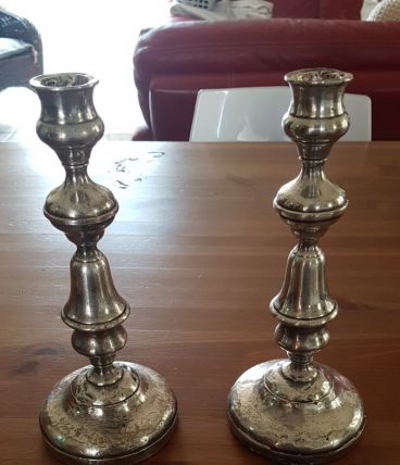 Chandeliers métal argenté. L'un d'eux est abîmé au pied, voire photo