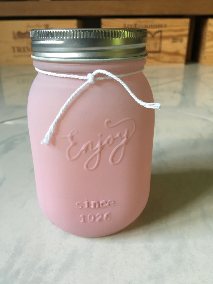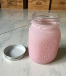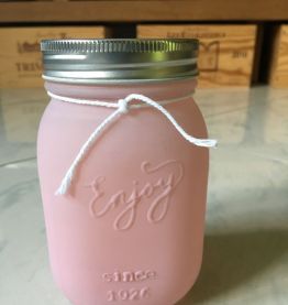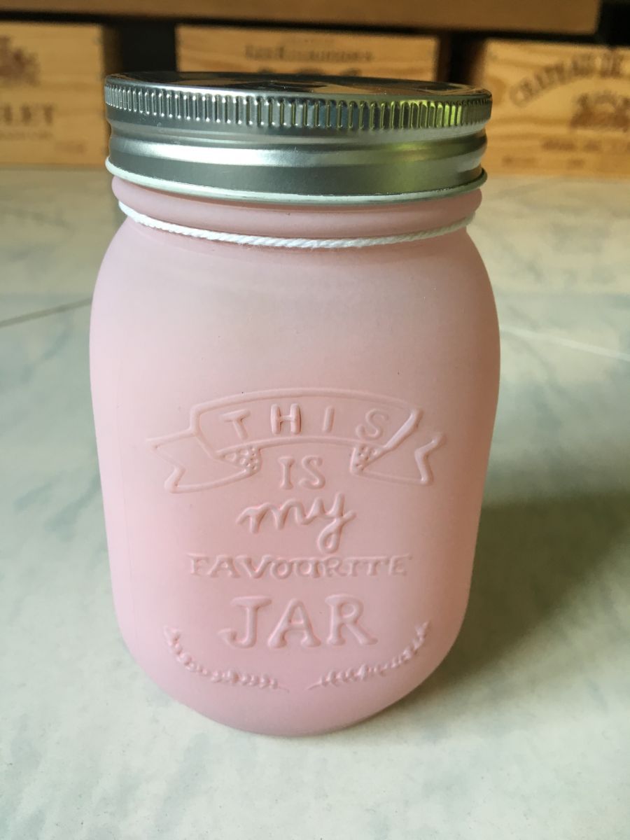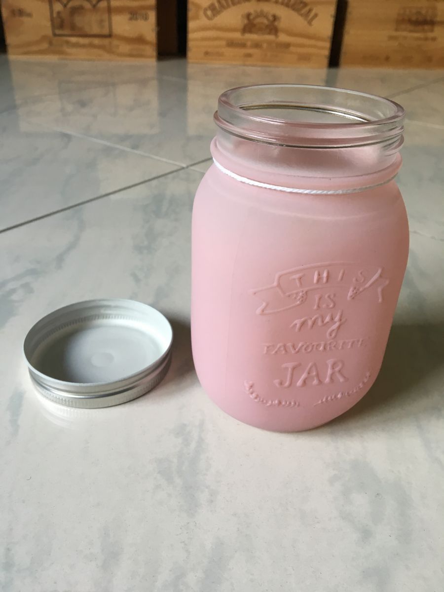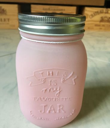 Bocal en verre rose claire. Le pot a un couvercle à visser métallique. J'ai 8 Bocaux rose clair. Il mesure 13x7x7cm.