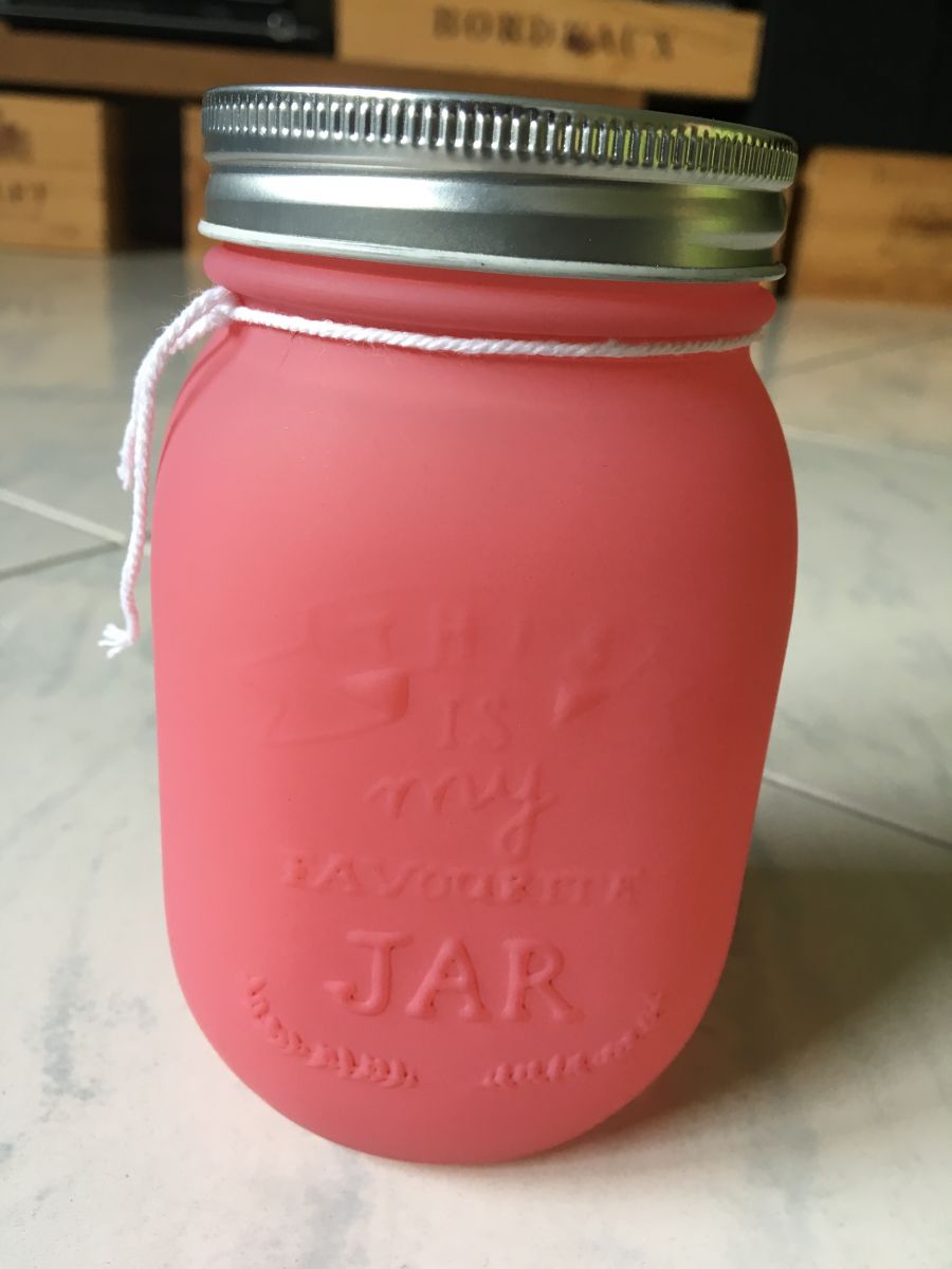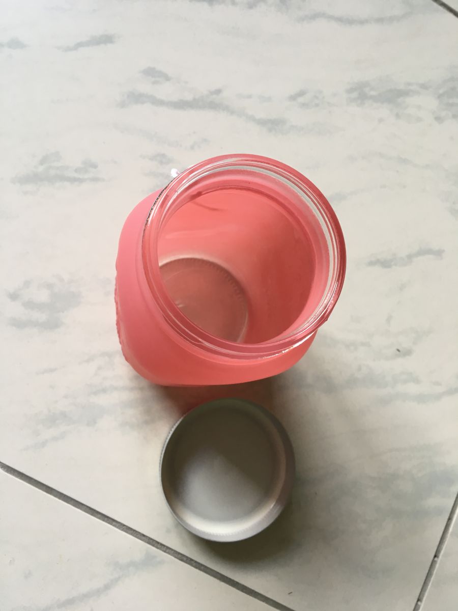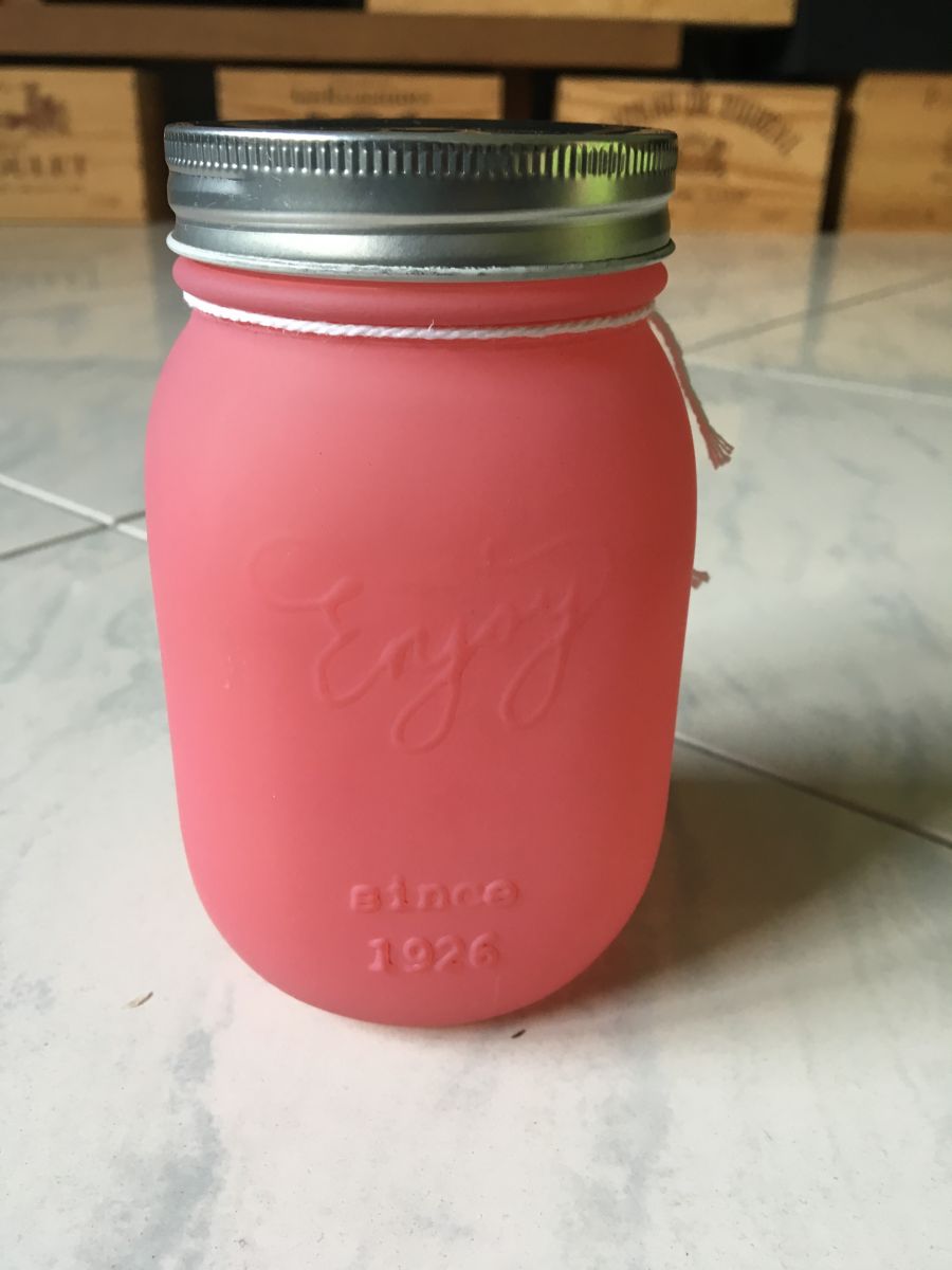 Bocal en verre rose foncé. Le pot a un couvercle à visser métallique. J'ai 5 Bocaux rose foncés. Il mesure 13x7x7cm.