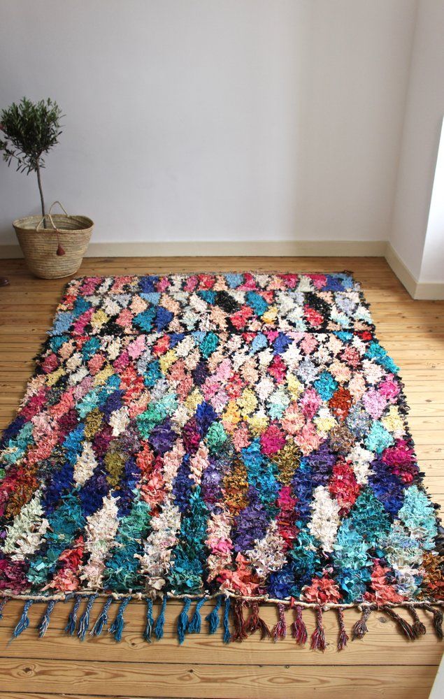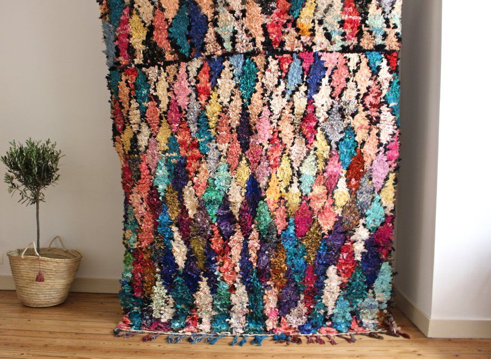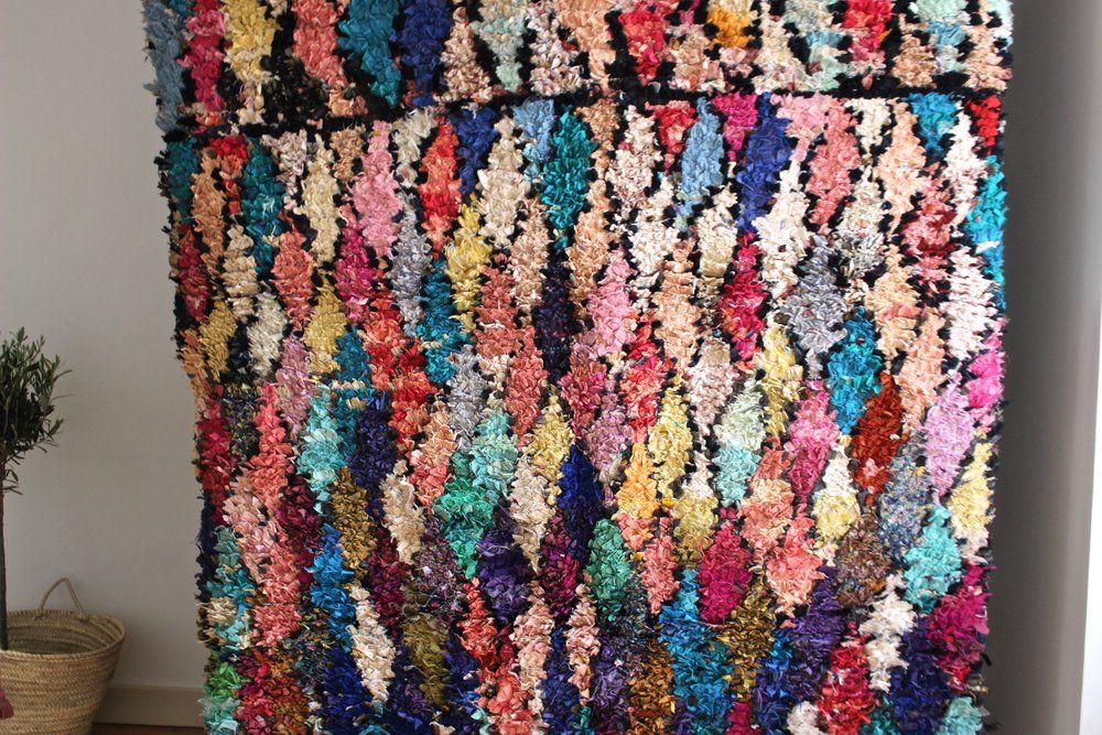 Les losanges du bas ( coté franges) rétrécissent progressivement pour terminer en petits losanges, comme un chemin qui se dessine ...