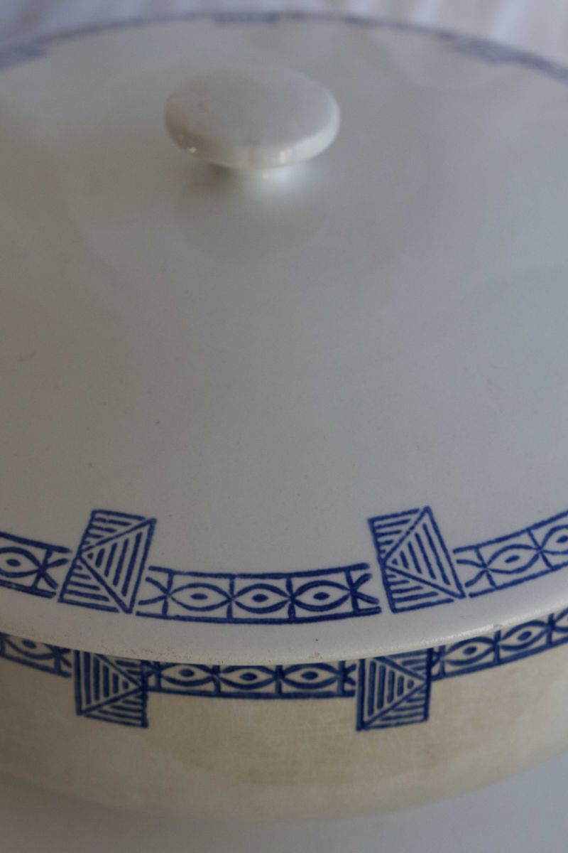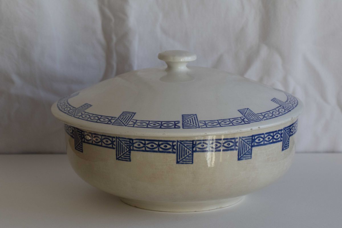 belle soupière en très bon état en gien ancien, décoré d'une jolie frise art déco