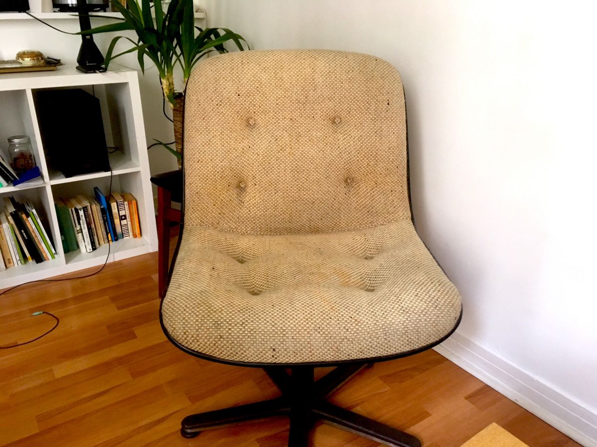 Laine chinée beige, dossier plastique noir, pieds acier.