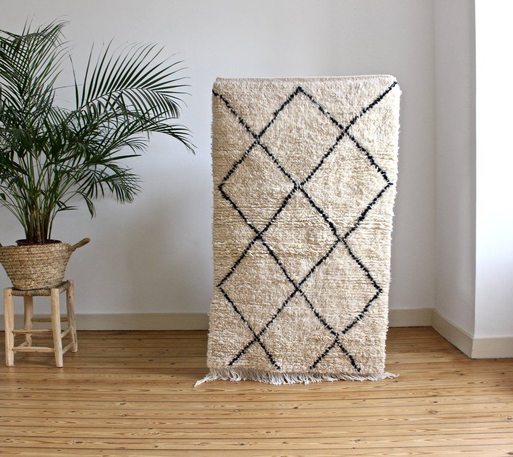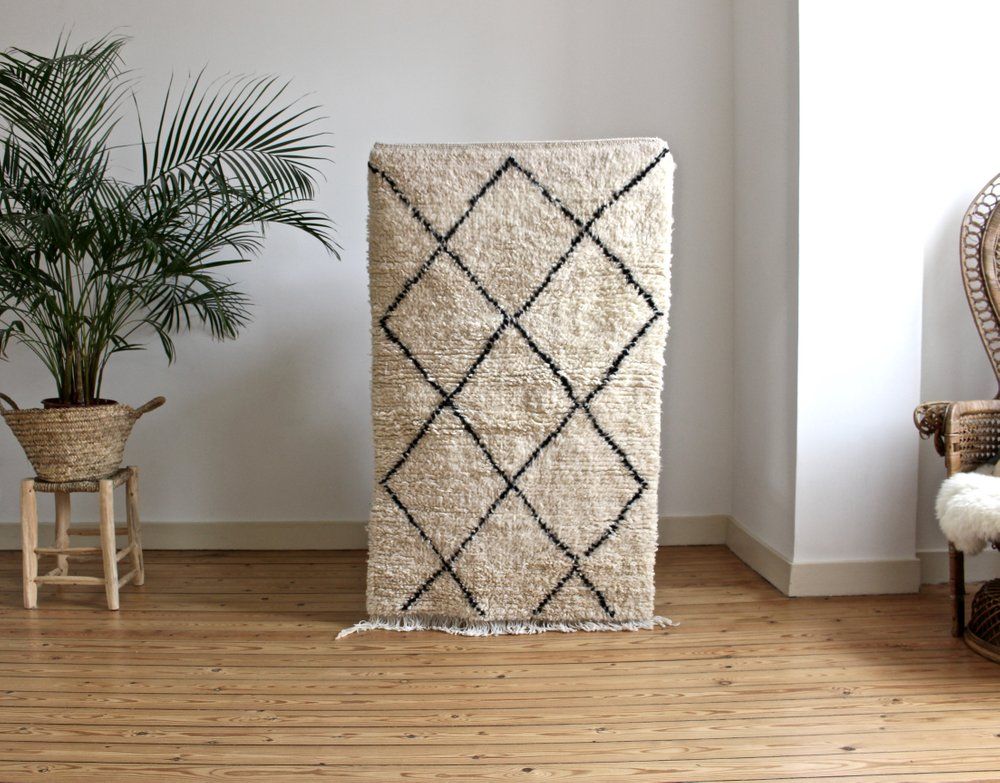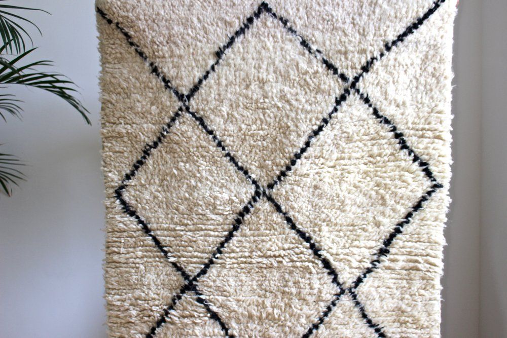 Tapis beni ouarain tissé main dans le moyen atlas du Maroc