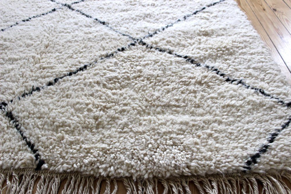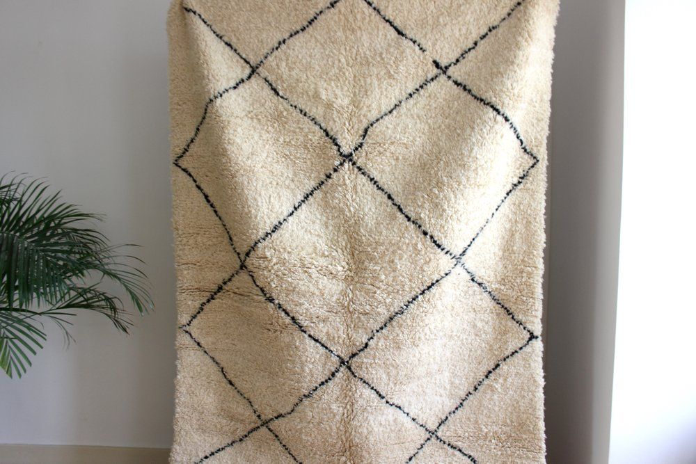 Tapis béni ouarain tissé main au Maroc par les familles de tisserandes avec lesquelles nous travaillons