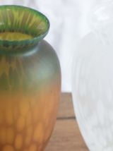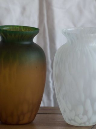 2 petits vases très déco en pâte de verre entièrement couverte d'un motif un peu pailletés petite paire cohérente et totalement charmante pour une jolie déco 350 gr pièce