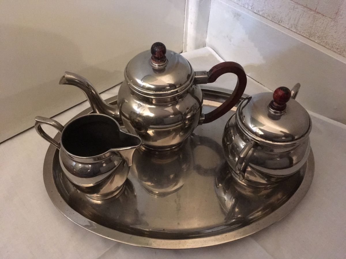 théière/cafetière, sucrier, pot à lait, plateau. 36x27x15cm 1,2kg.