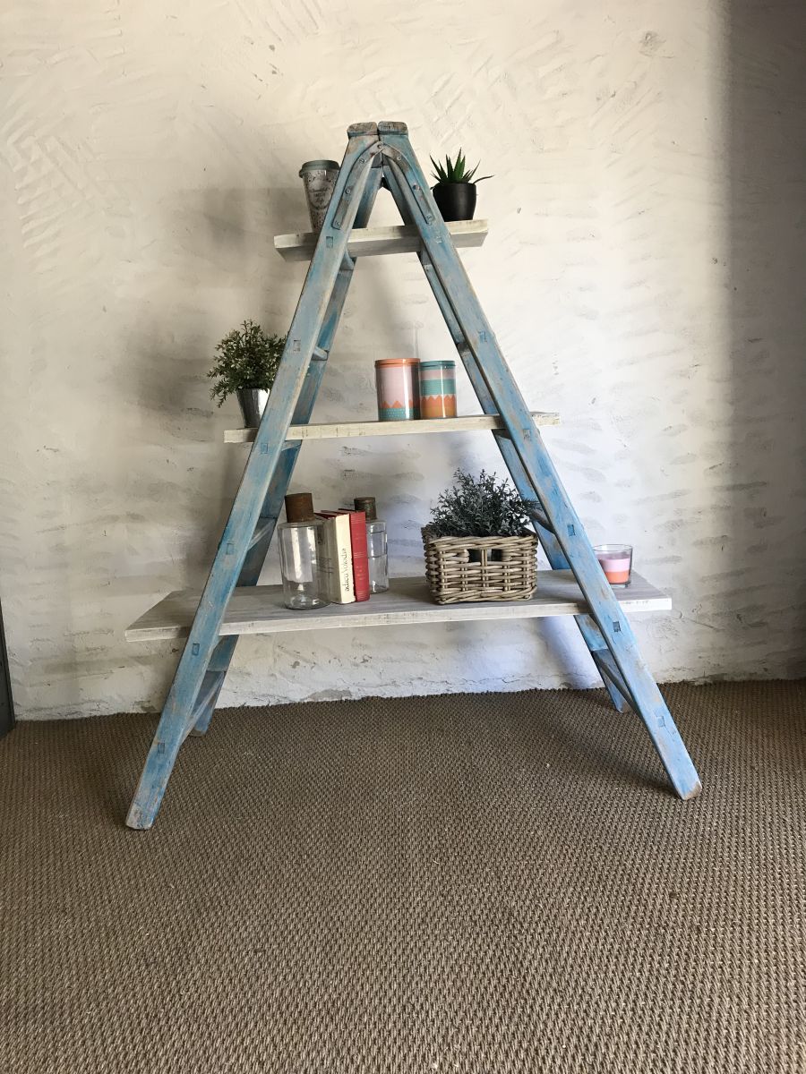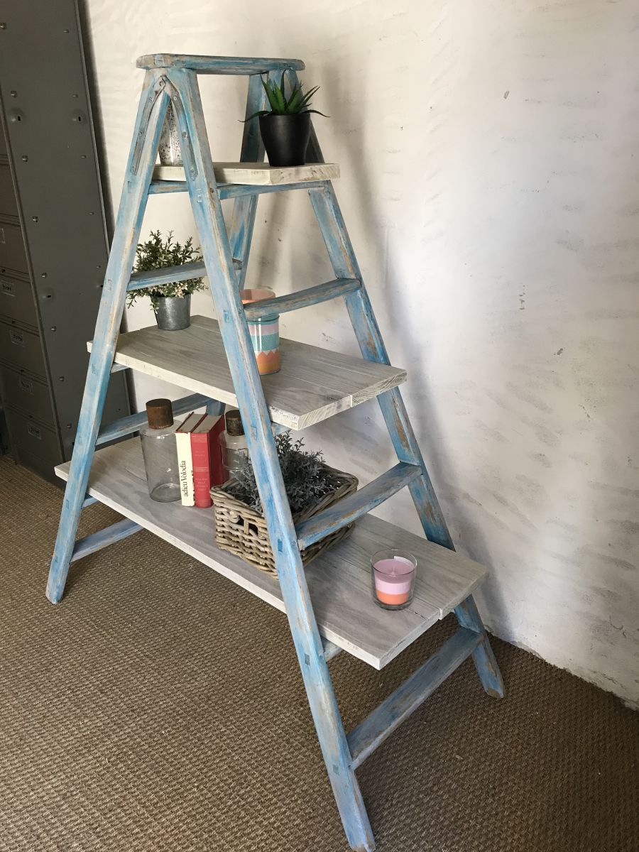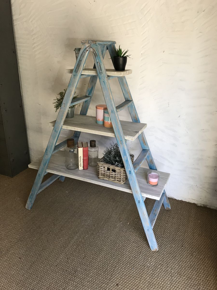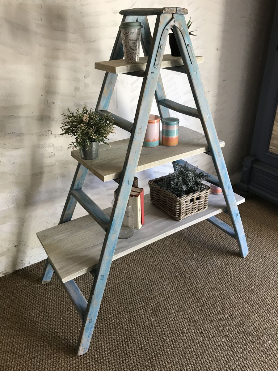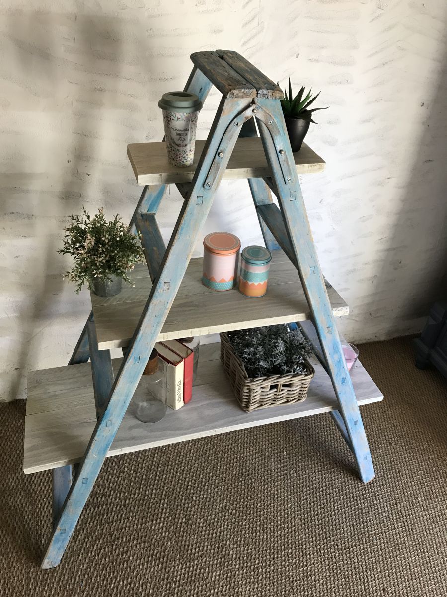 Escabeau ancien entièrement restauré dans un esprit shabby