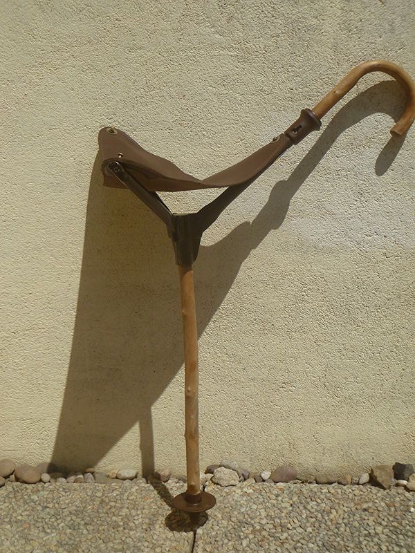 Canne-siège en châtaignier.