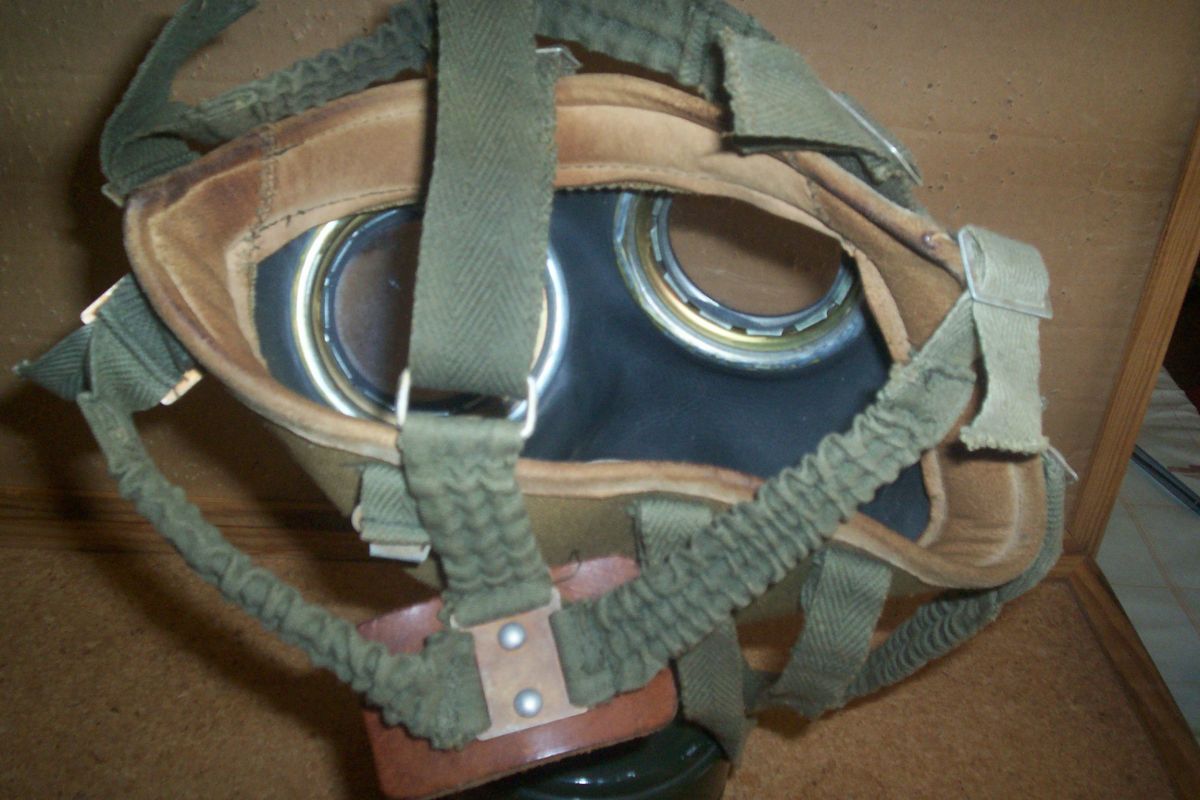 masque contre le gaz ou chimique militaire démilitarisée et autorisépour collection habillements manequin objet en très bon état verres tissu sangles impeccables .