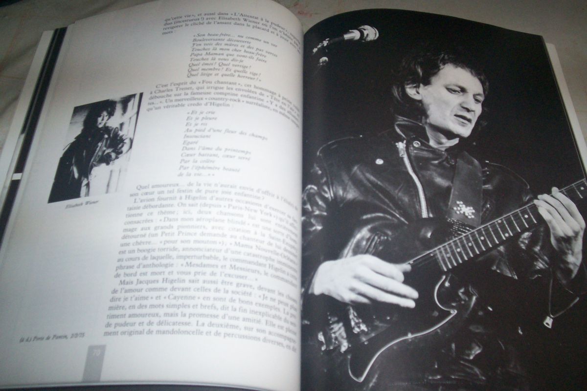 album grand formatsur JACQUES HIGELIN cartonnée semi rigide 28,5 cm par 20,5 cm et 134 pages de l'année 1985 soit 33 ans d'age livre de jean-marie leduc et jacques vasseur des éditions rock & folk albin michel très nombreuses photos noires et blanches et couleurs ouvrage d'occasion en excellent état .