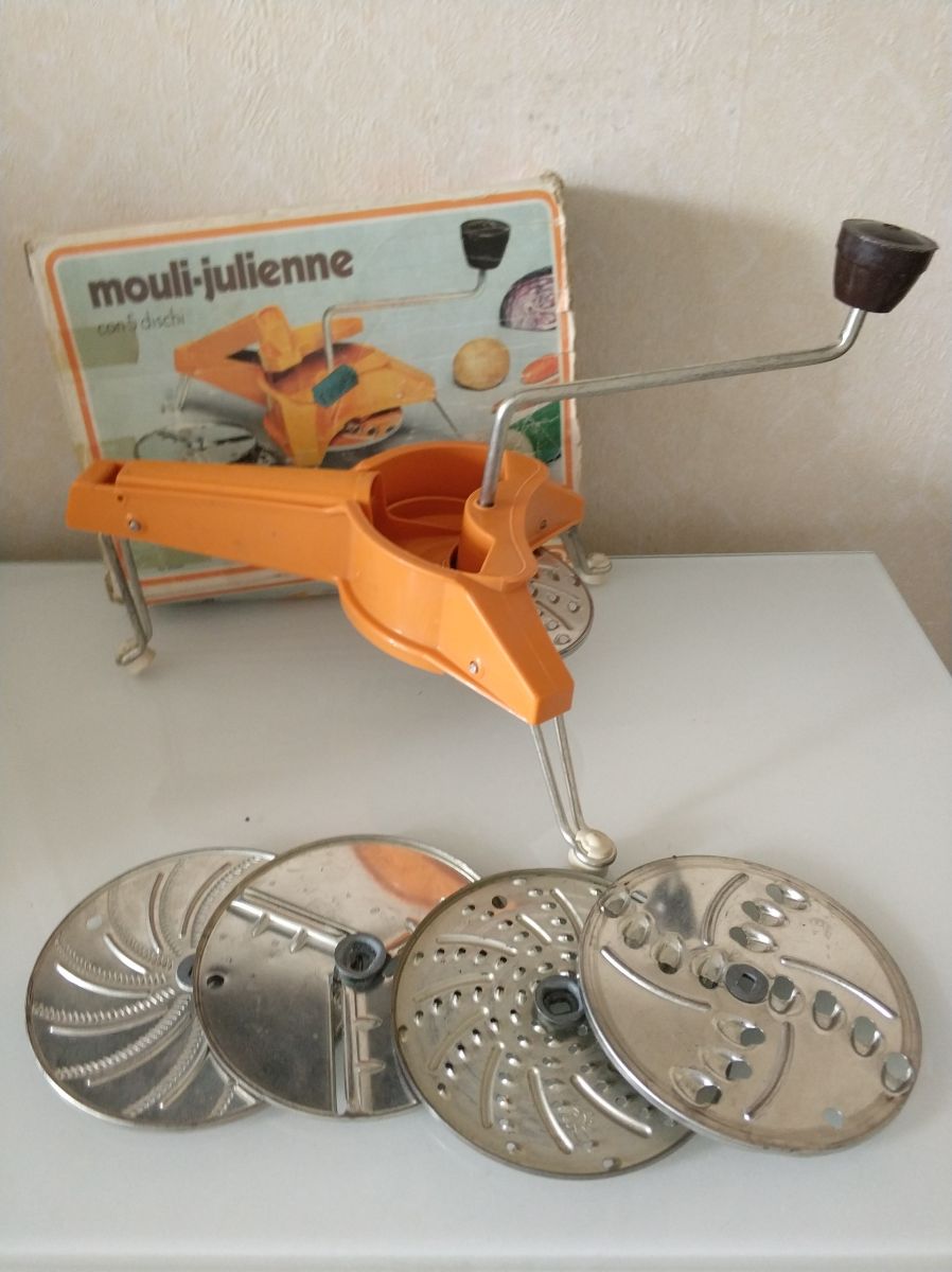 Un moulin julienne avec ses 5 grilles en bon état et dans son carton d'origine !