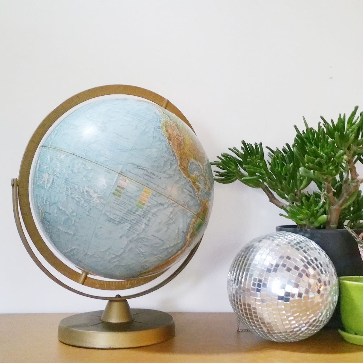 elle mappemonde/ globe rétro estampillé Scan Globe - Danemark.
