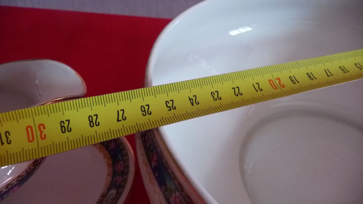 8 cm de haut et 25 cm de long pour la soupière.