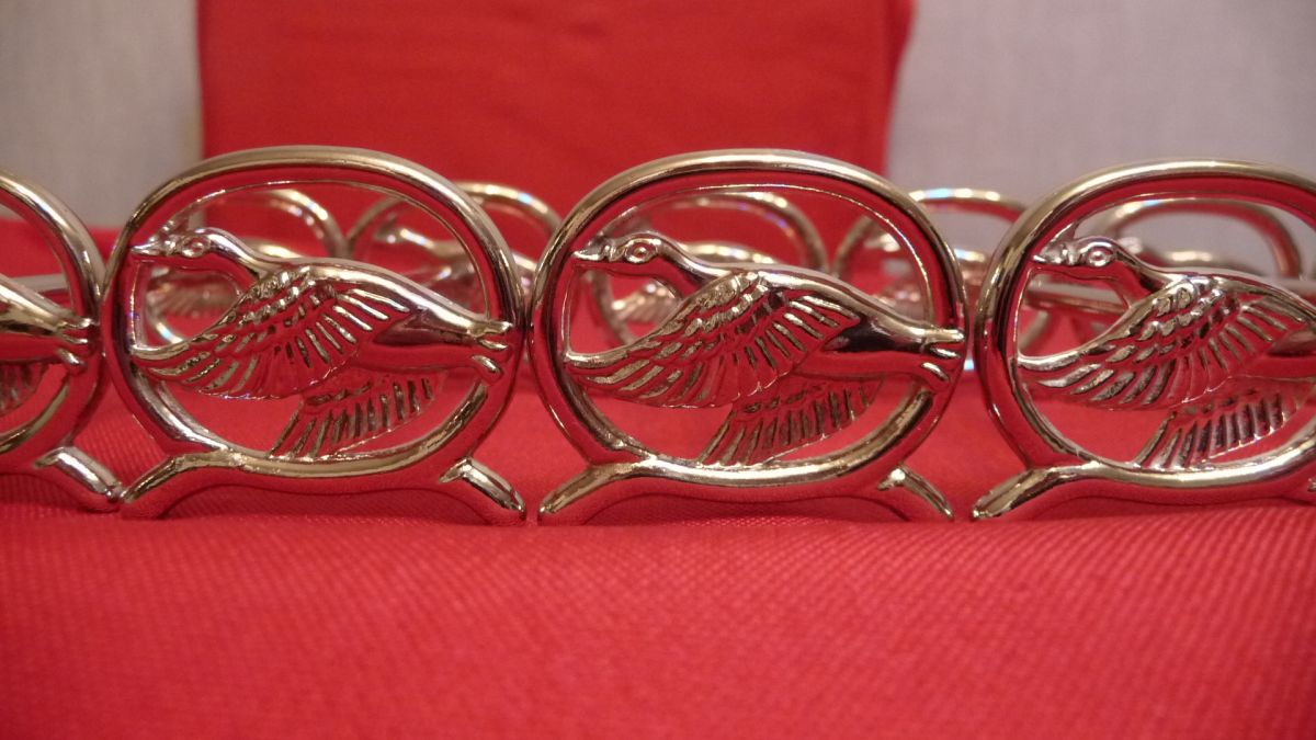 jolis porte couteaux avec des motifs d'oies en vol.