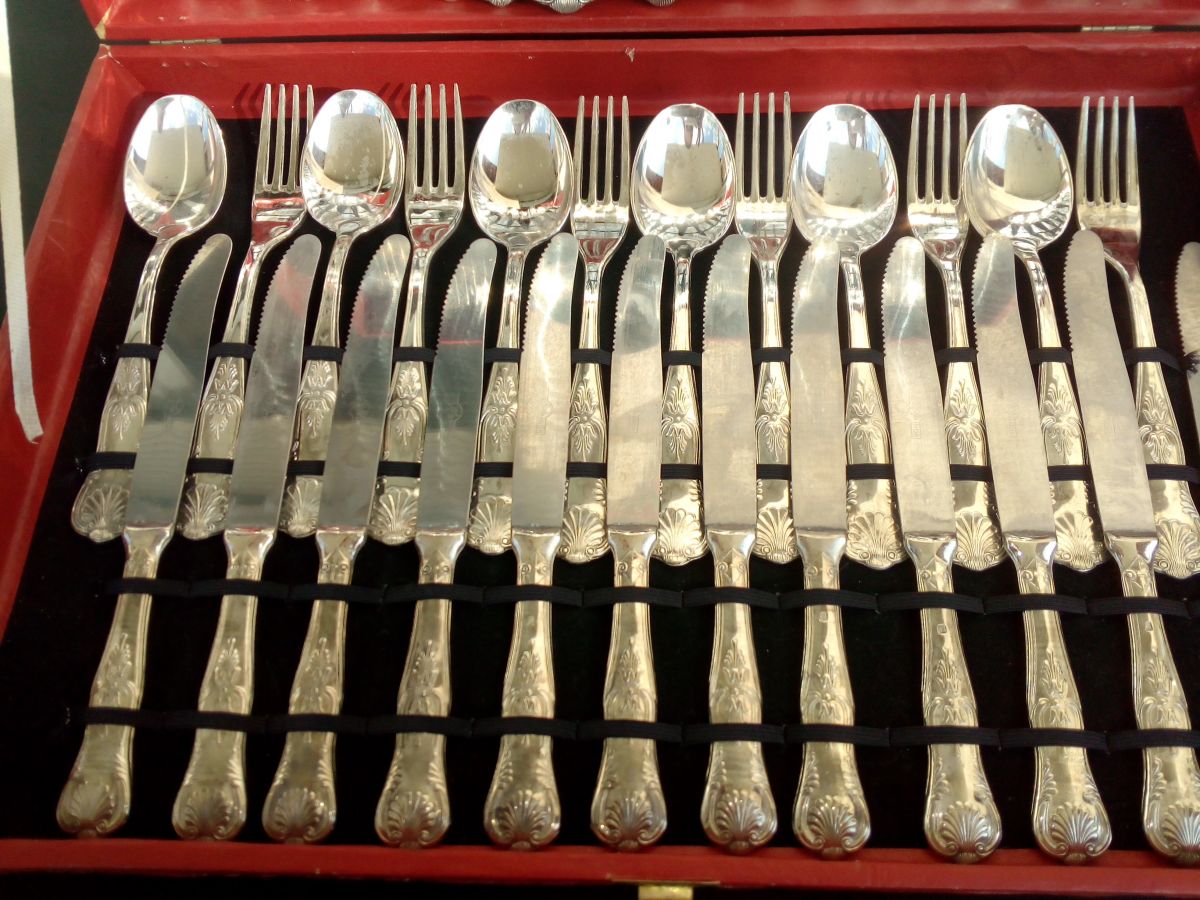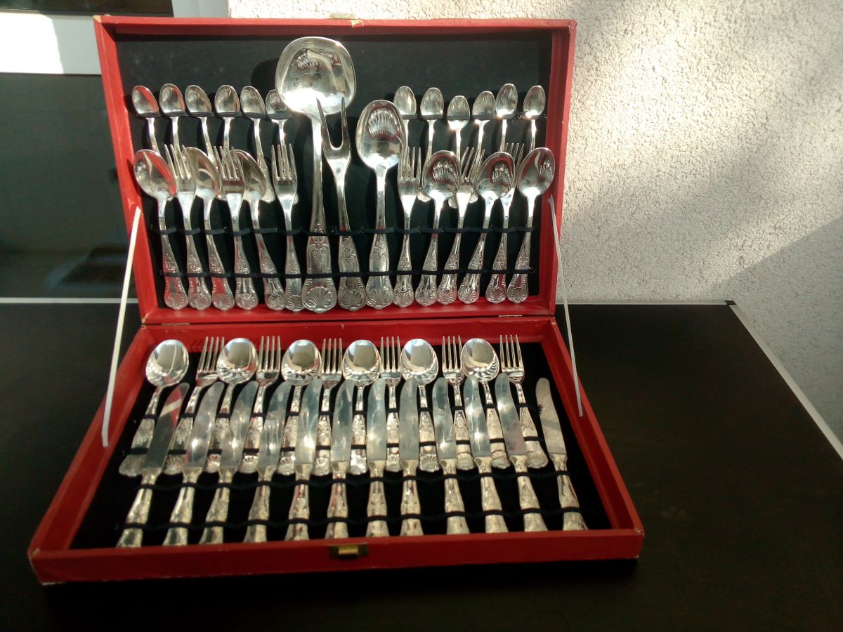 Très belle ménagère plaquée argent ancienne qui a très peu servie et qui a toujours été entretenue.