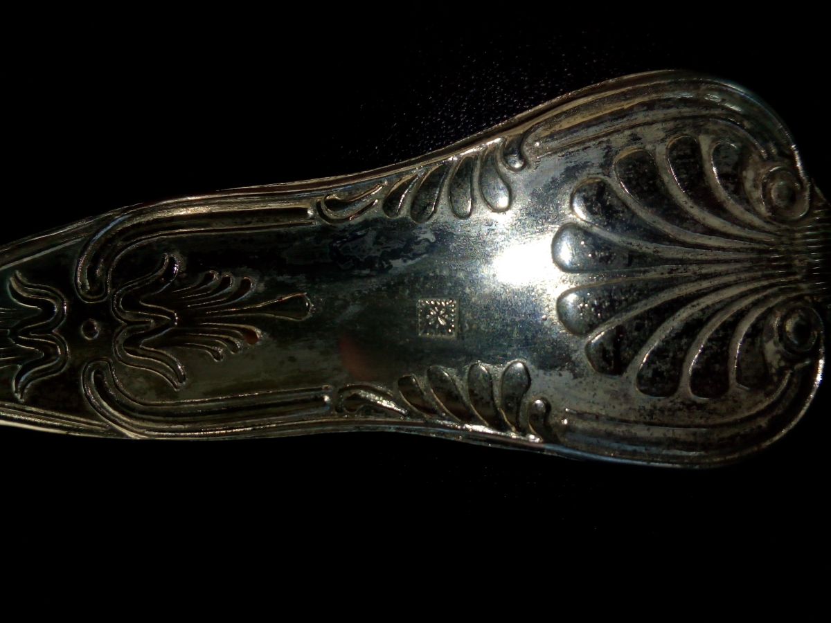 Il y a un poinçon "fleur" sur le manche de chaque couvert . Elle est rangée dans son coffret d'origine qui est un peu abîmé mais encore très fonctionnel. Après un bon nettoyage, elle sera du plus bel effet sur votre table ! Les frais de port pour la France Métropolitaine vous sont offerts.