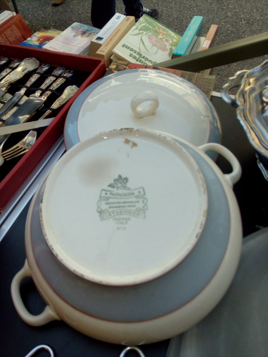 Légumier en céramique signé PAGNOSSIN. Fondée en 1919 par Angelo Pagnossin, cette marque implantée à Trévise séduit par ses assiettes et services à thé aux teintes estivales.