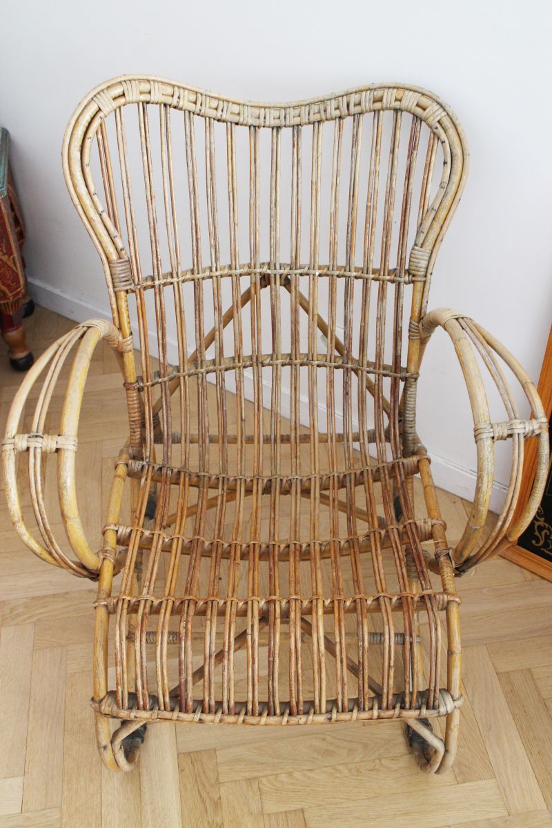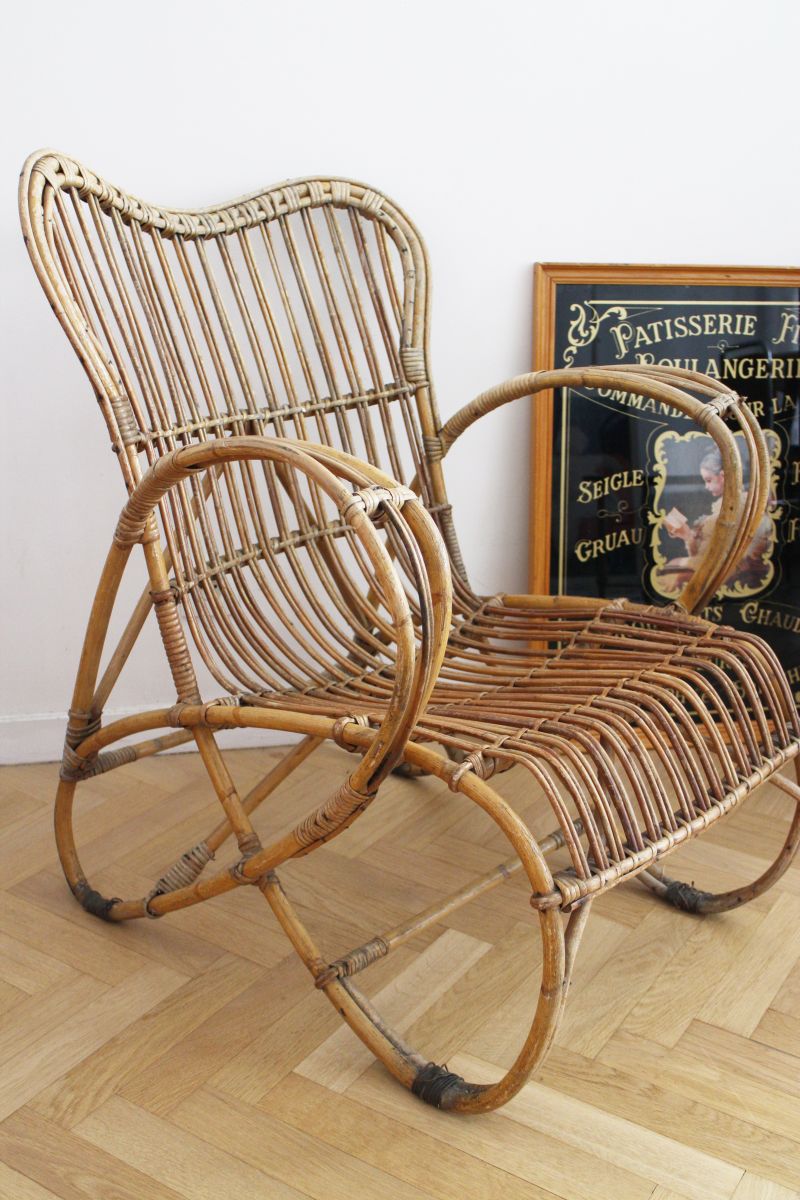 Fauteuil en rotin vintage, idéal pour les amateurs de pièces dans leur jus !