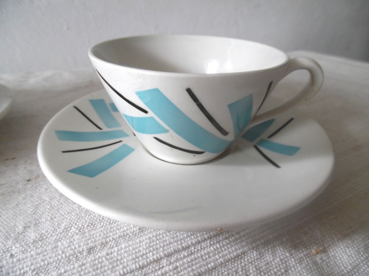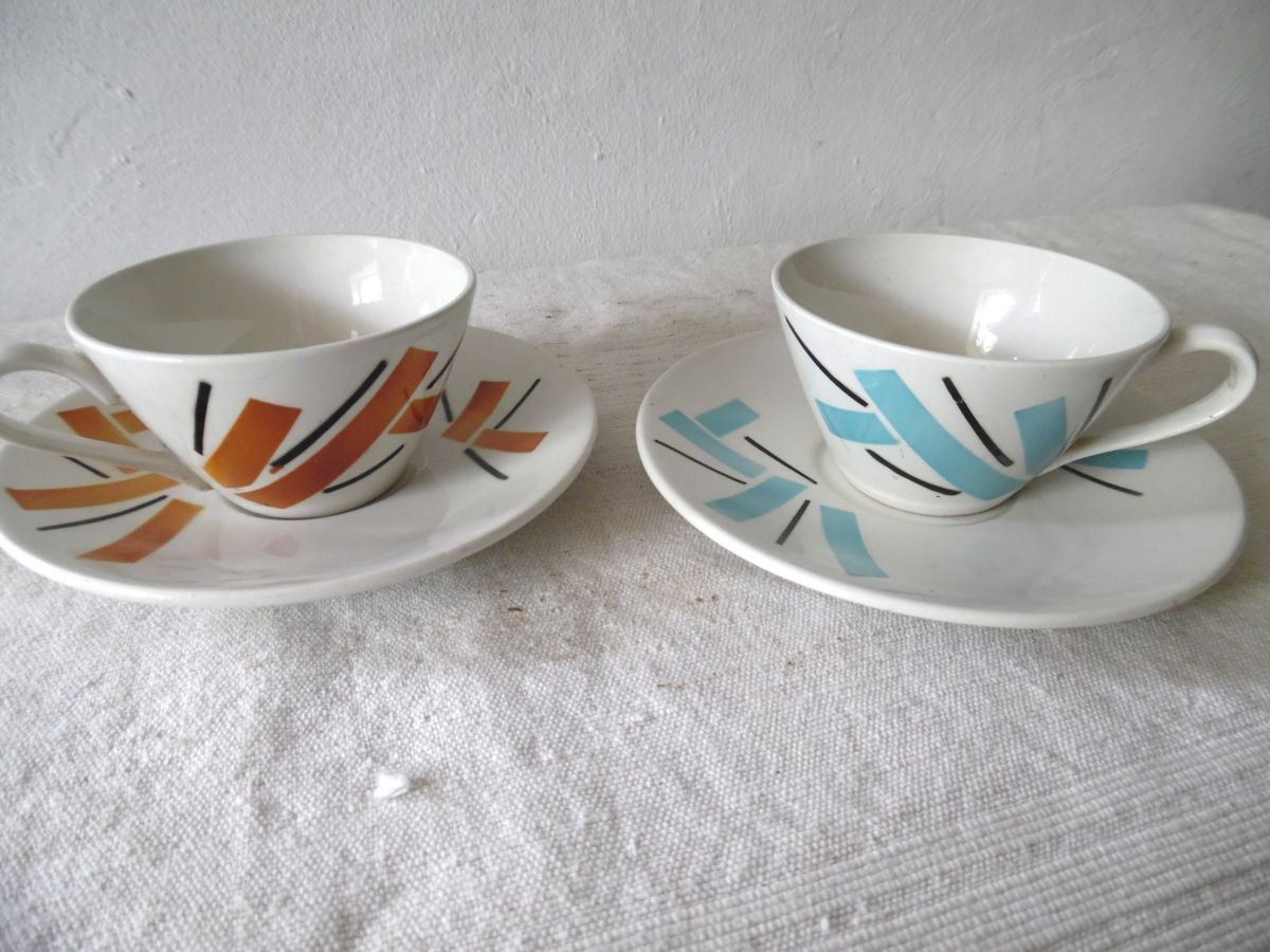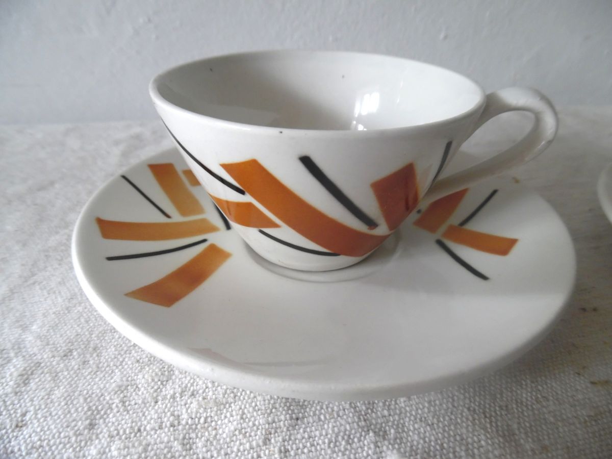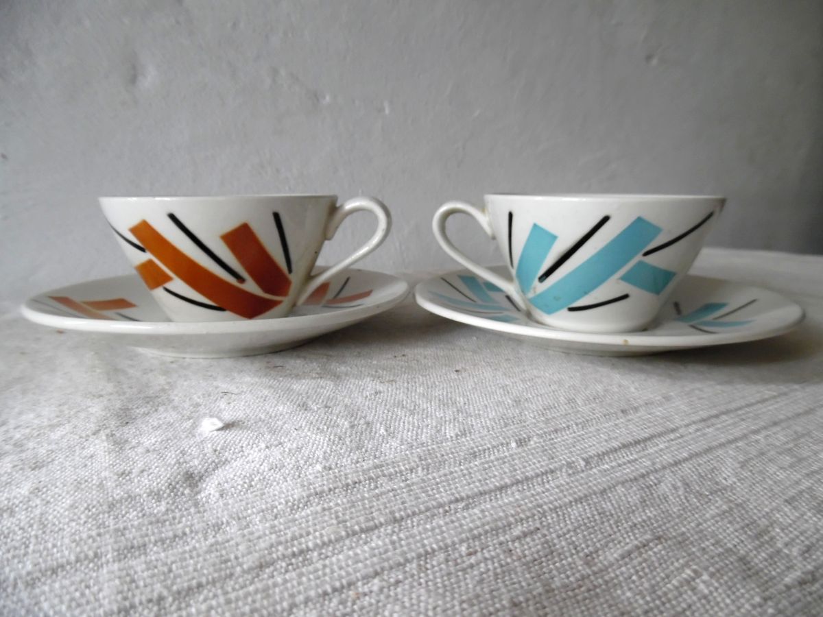 joli duo de tasses à café avec soucoupes en faïences ,numérotées.