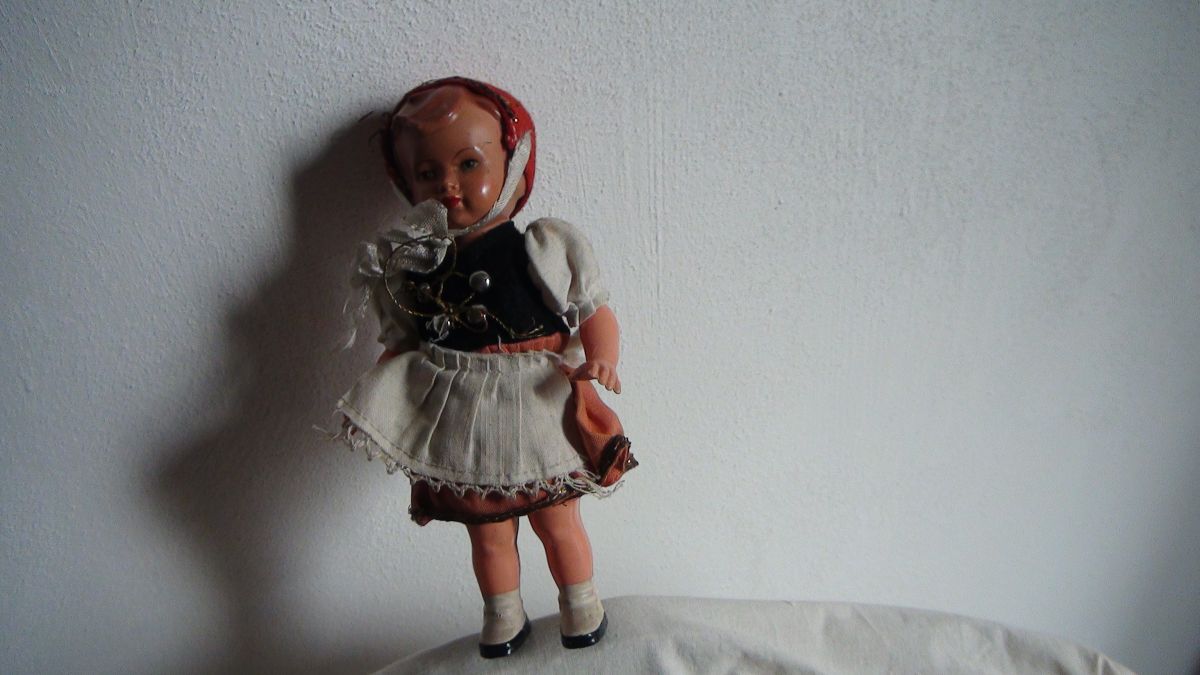 poupée celluloïd Germany année 50 mécanique danse je n'ai plus la clé mais j'ai essayé avec un autre moyen et elle fonctionne!