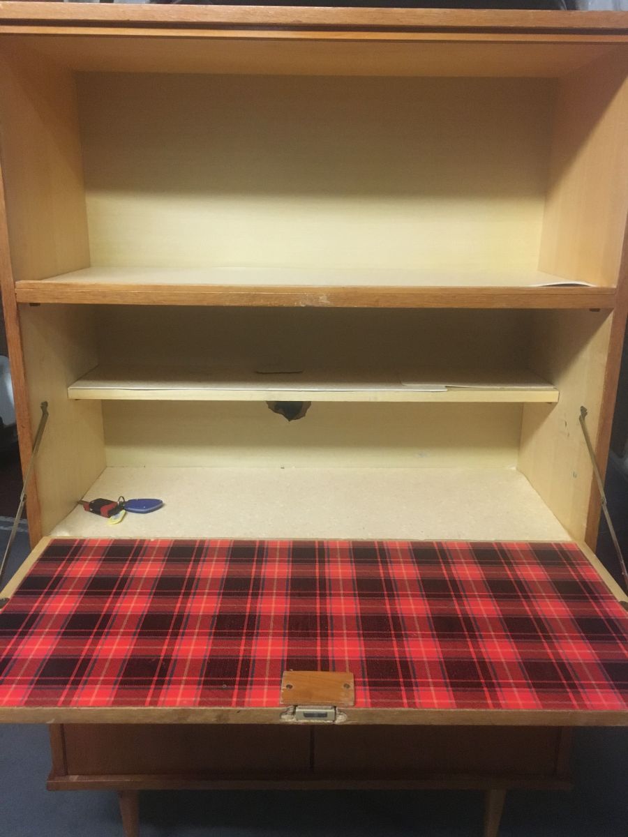 Joli secrétaire vintage années 60, pieds compas, aux lignes scandinave.