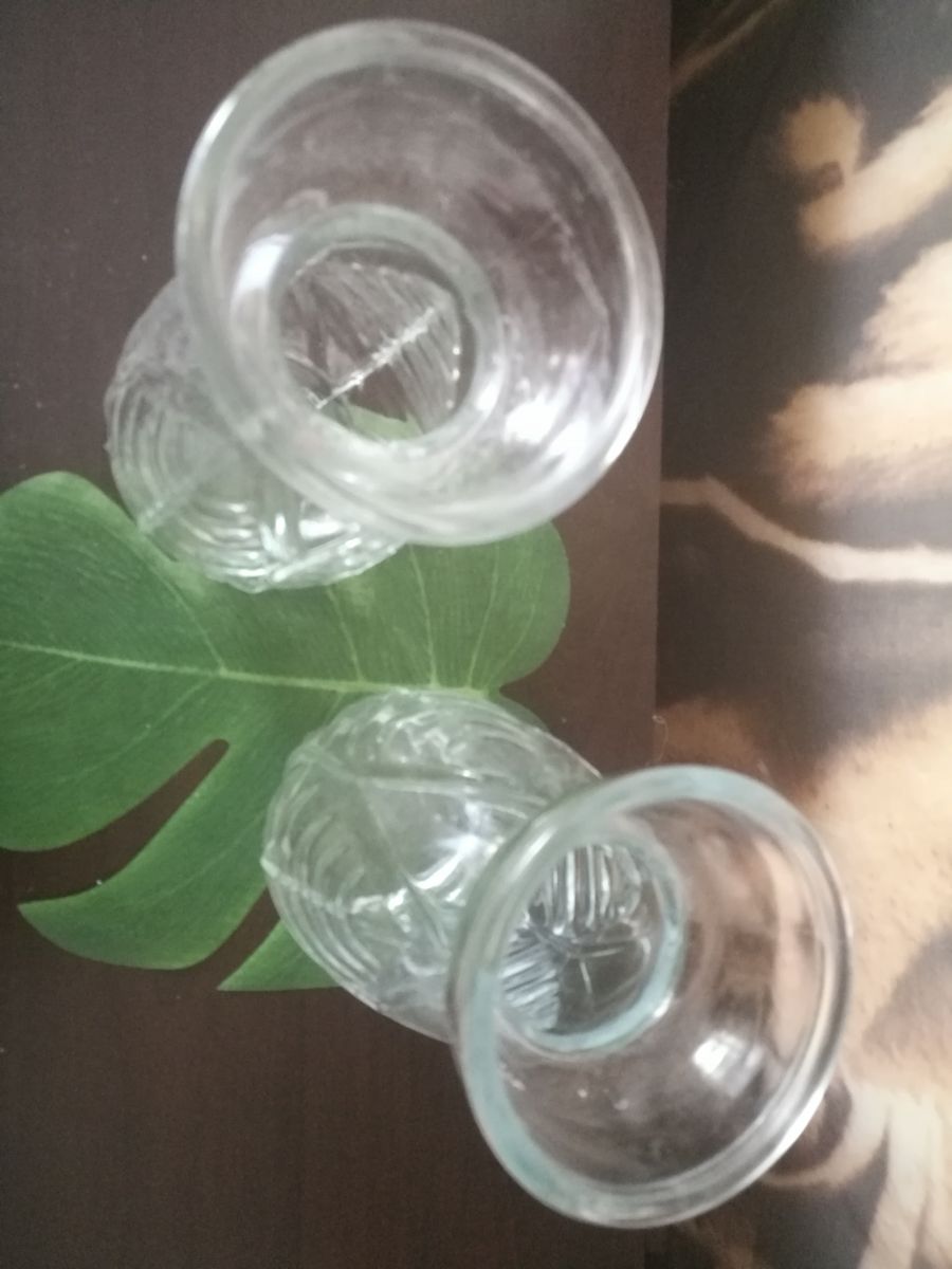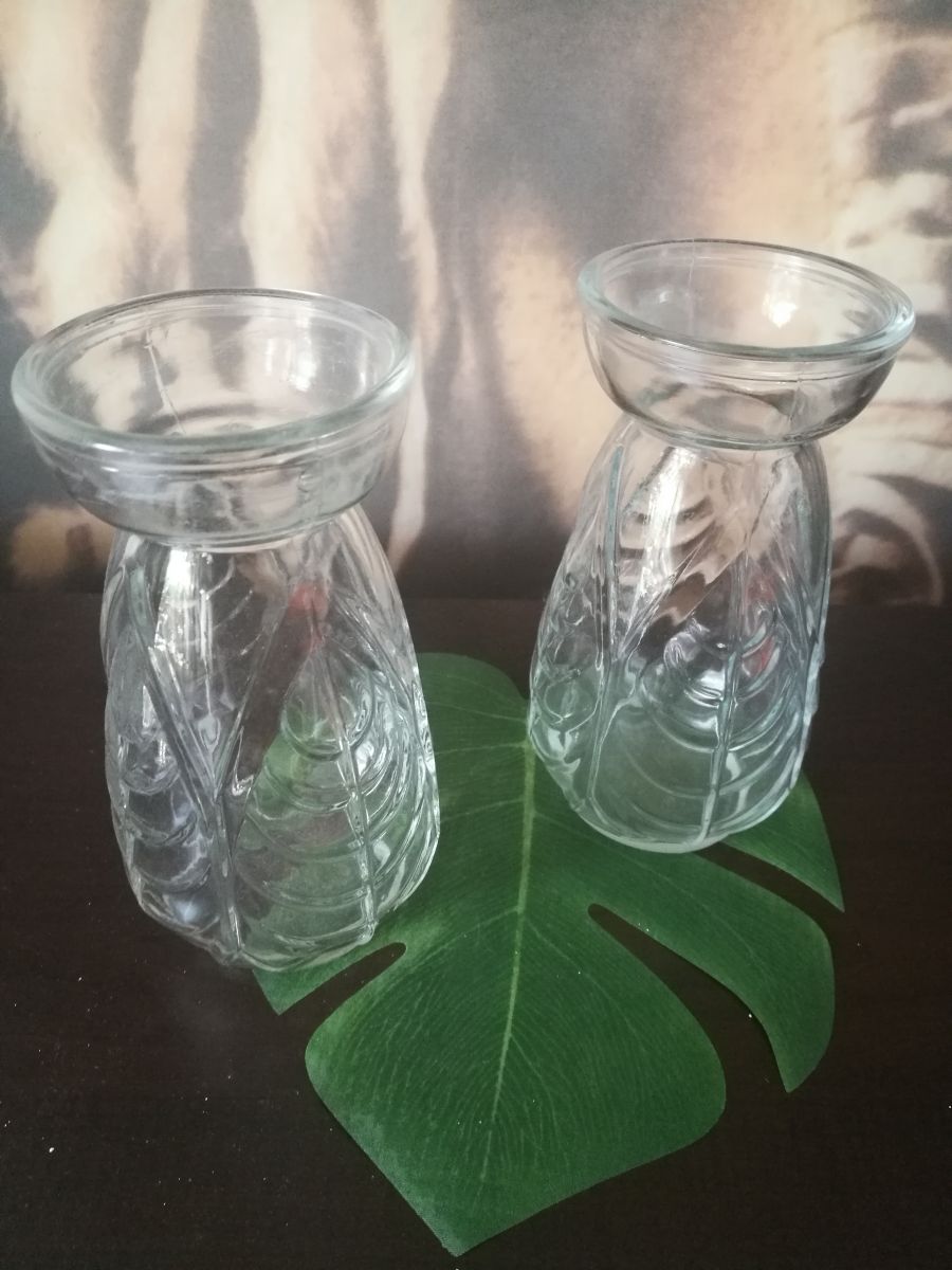 Lot de 2 vases à jacinthe en verre transparent de l'époque art-déco.