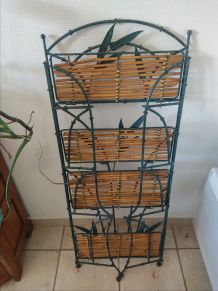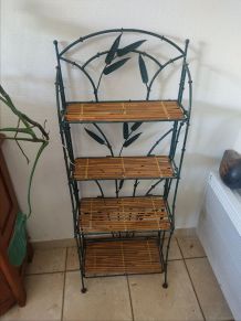 Jolie Etagere murale comprenant 2 montants dorés et3 tablettes en metal noir . Attention sur la photo il y a deux etageres
