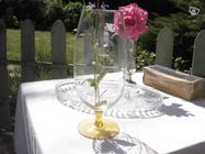 Probablement des années 70 ce vase en verre avec un pied marron peut être un bel objet déco,