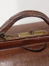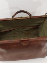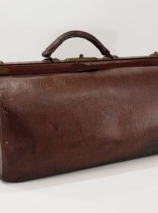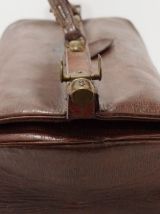Sac de médecin en cuir véritable texturé de couleur marron des années 1910