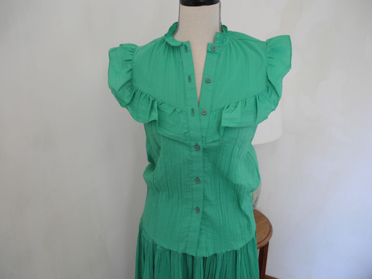 *Haut très sympa avec le même petit plissé, manches très courtes volantées. Même volant sur le devant.