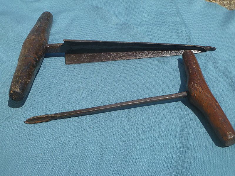 outils anciens de tonnelier servant à percer les trous dans les tonneaux